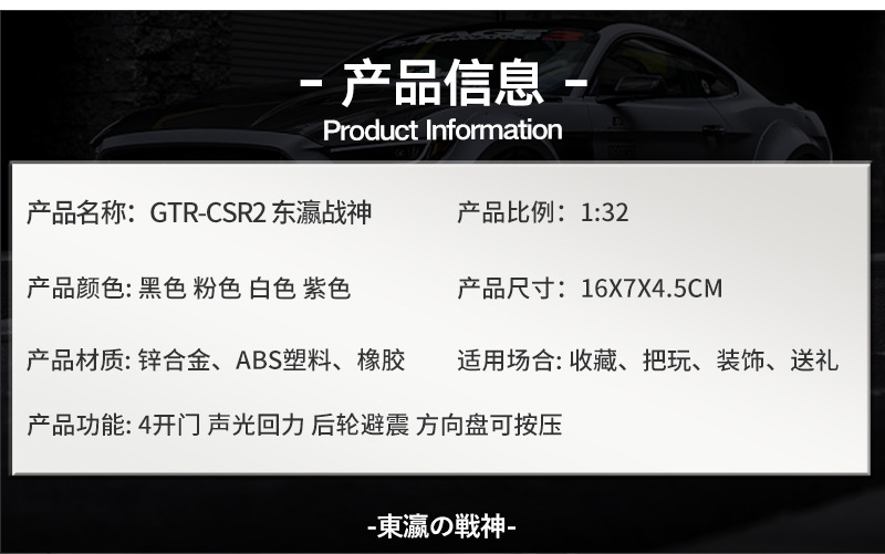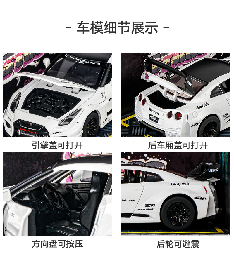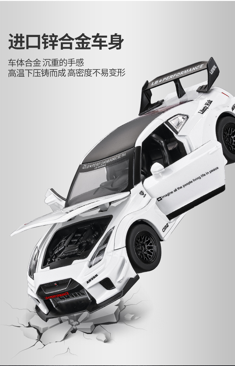 车致1:32/24尼桑GTR跑车战神合金声光回力仿真合金汽车模型赛车版
