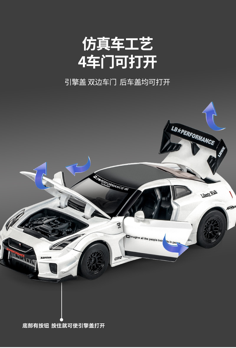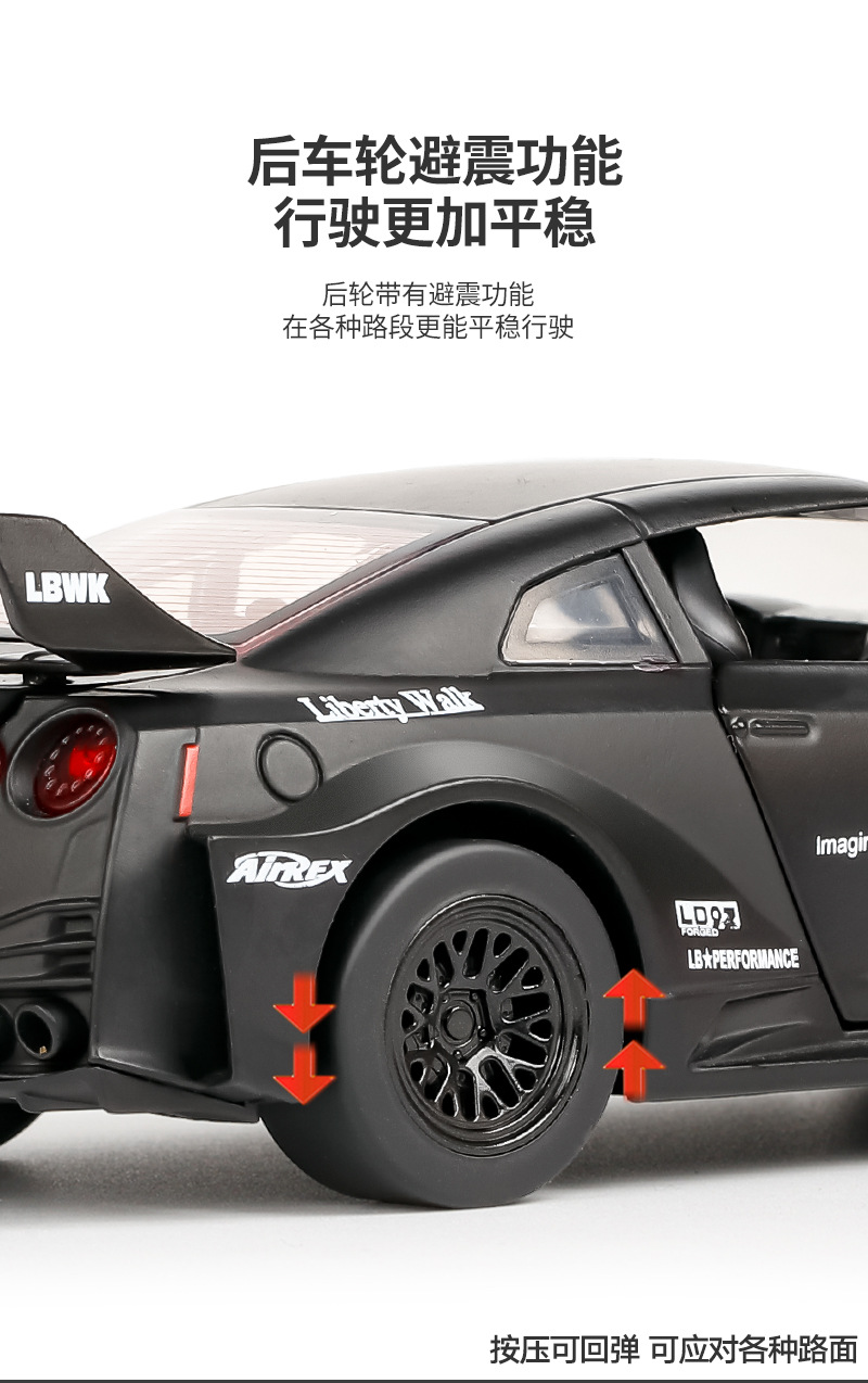 1:24東瀘戦神GTR免震シミュレーション金属模型車免震回力ドア開放音光子供玩具車