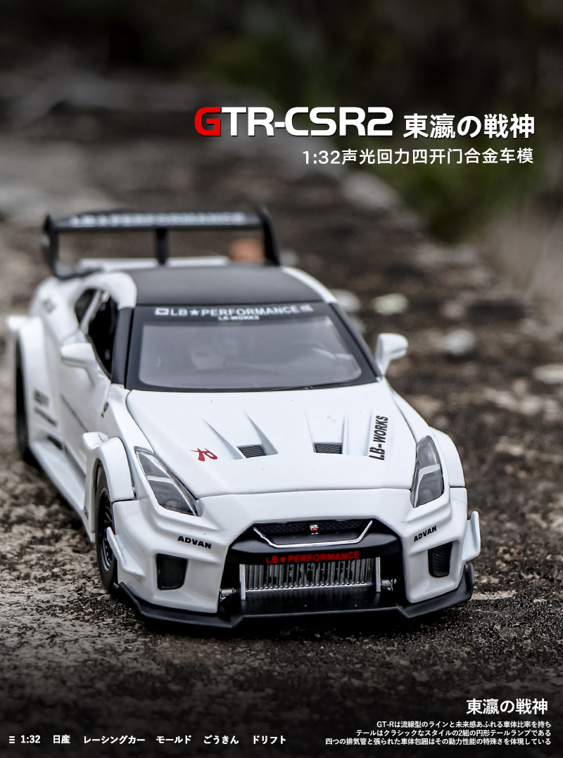 1:32GTR東瀘戦神スポーツカーオープンバック力音光シミュレーション自動車モデル合金後輪免震玩具