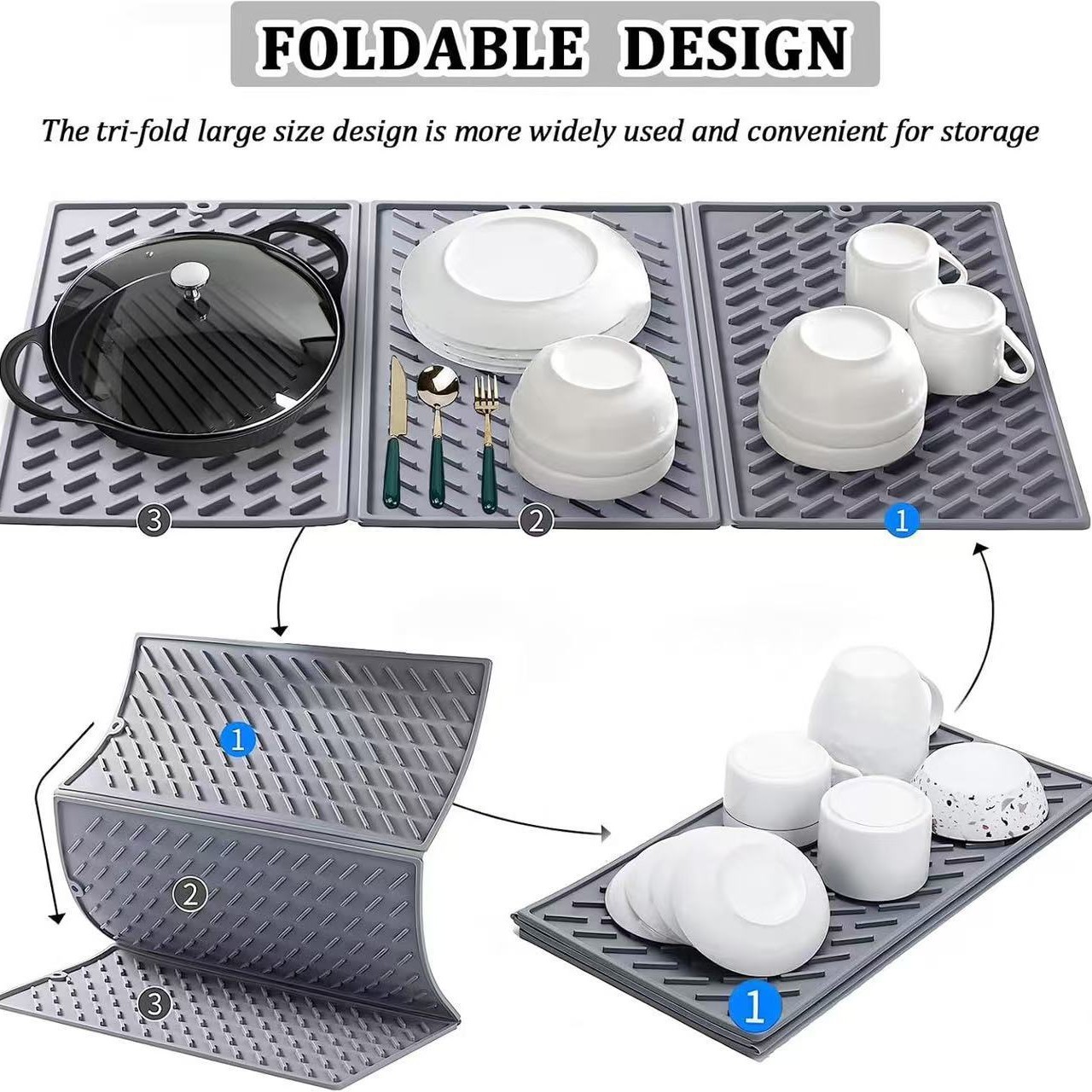 国境を越えた新製品のキッチンカウンターのシリコン食器の乾燥マットは、3割引の大きな食器の水切りマットの滑り止めマットを折ることができる