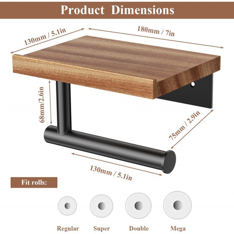 無垢材ペーパータオルホルダー、ロールペーパー収納ラック、壁掛け鉄と木の組み合わせ、仕切り板付き収納ラック、木製ティッシュホルダー