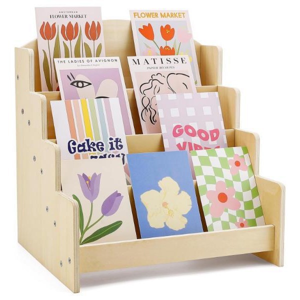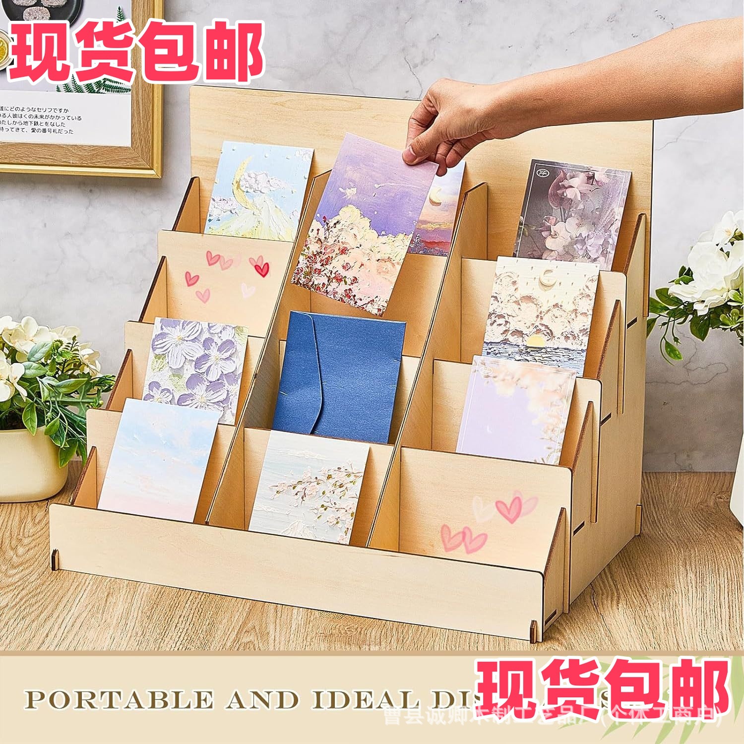 木製グリーティングカード棚グリーティングカード展示棚4段木製グリーティングカード収納棚簡易木製グリーティングカード収納棚