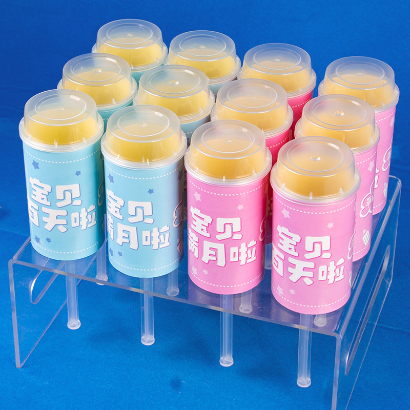 誕生日のデザート台はケーキの筒を配置して包装箱を飾ります。