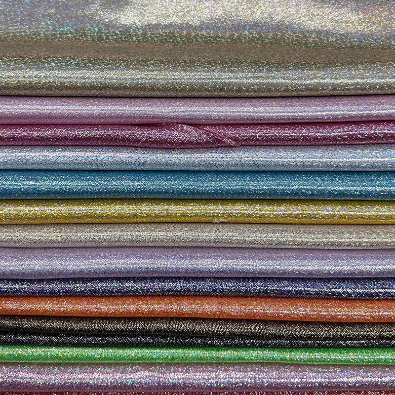 銀色のまぶしい色の材料の弾力性のまぶしい光のレーザーの幻の色の防水の生地の卒業する設計の七色の反射の箔押しのメーカー