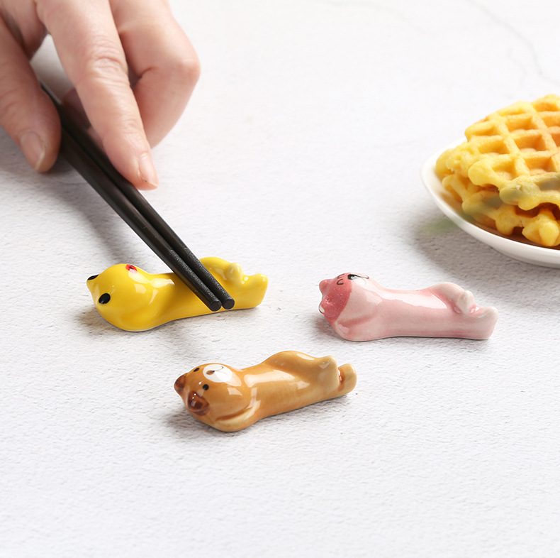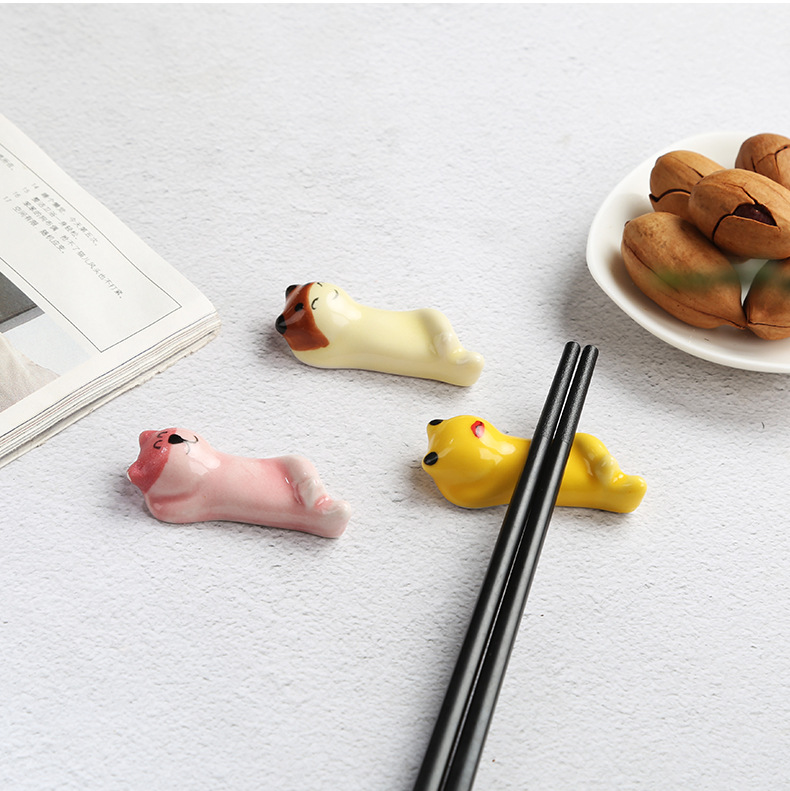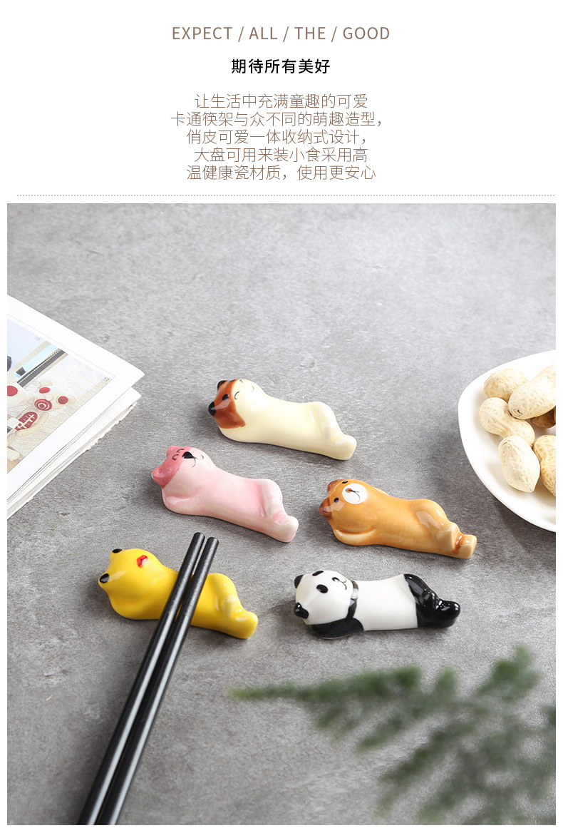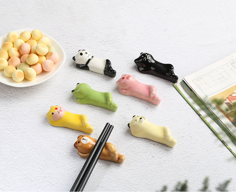 漫画のカエル動物セラミック箸置きかわいいパンダ小さな黄色いアヒル箸置きペン立てホテル家庭用小物
