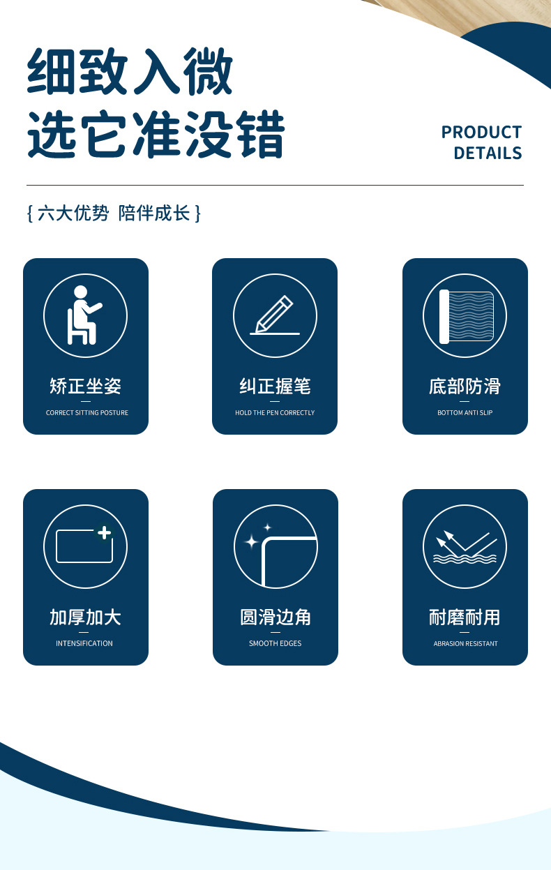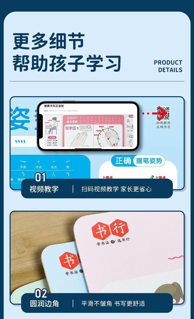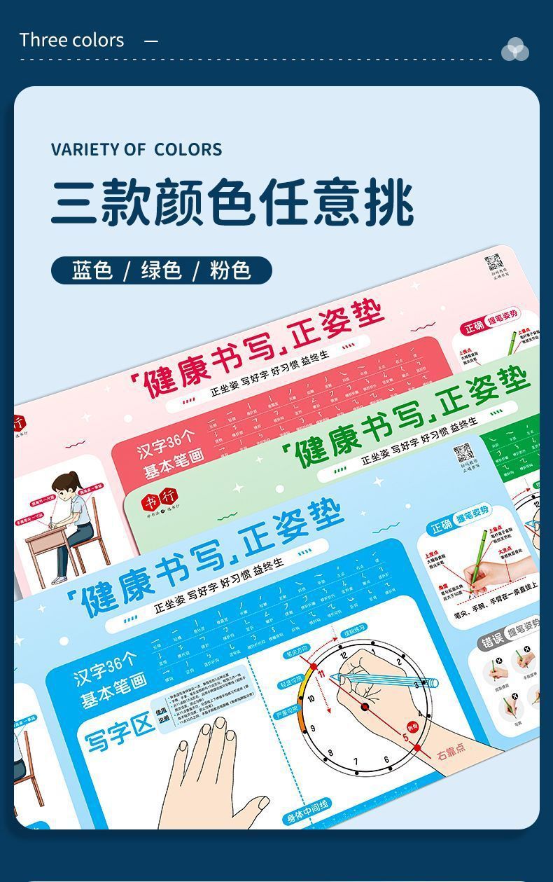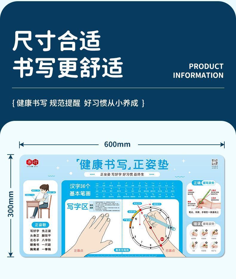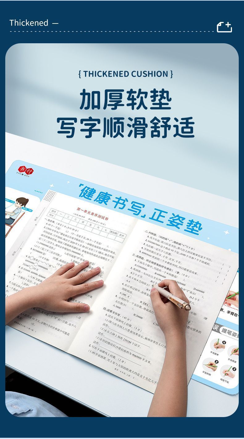 学生の正しい姿勢で書くためのパッド、小中学生の子供向けの筆持ち姿勢を正すための標準的な書き方パッド、デスクパッド、学習用ソフトパッド