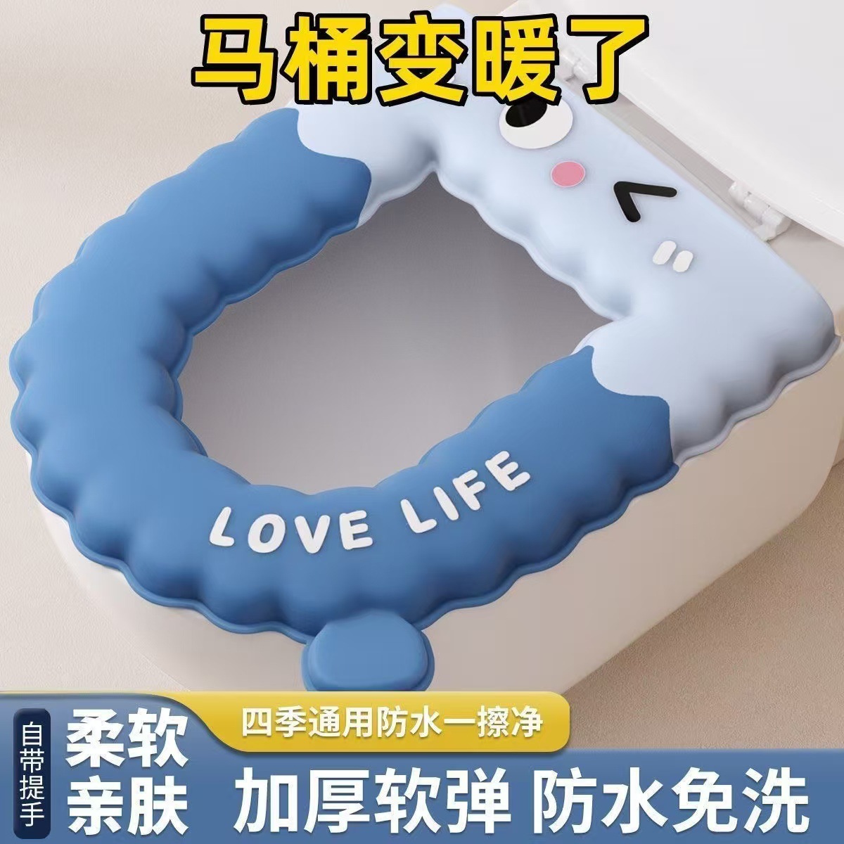 加厚新款厕所马桶垫四季通用水洗家用防水免洗可擦洗粘贴座圈坐垫
