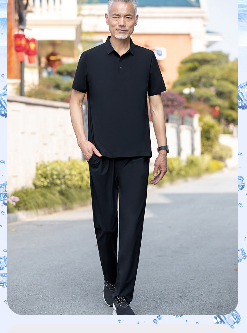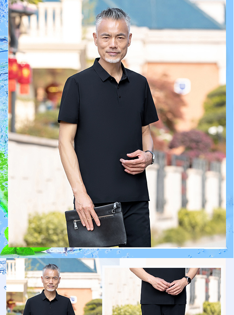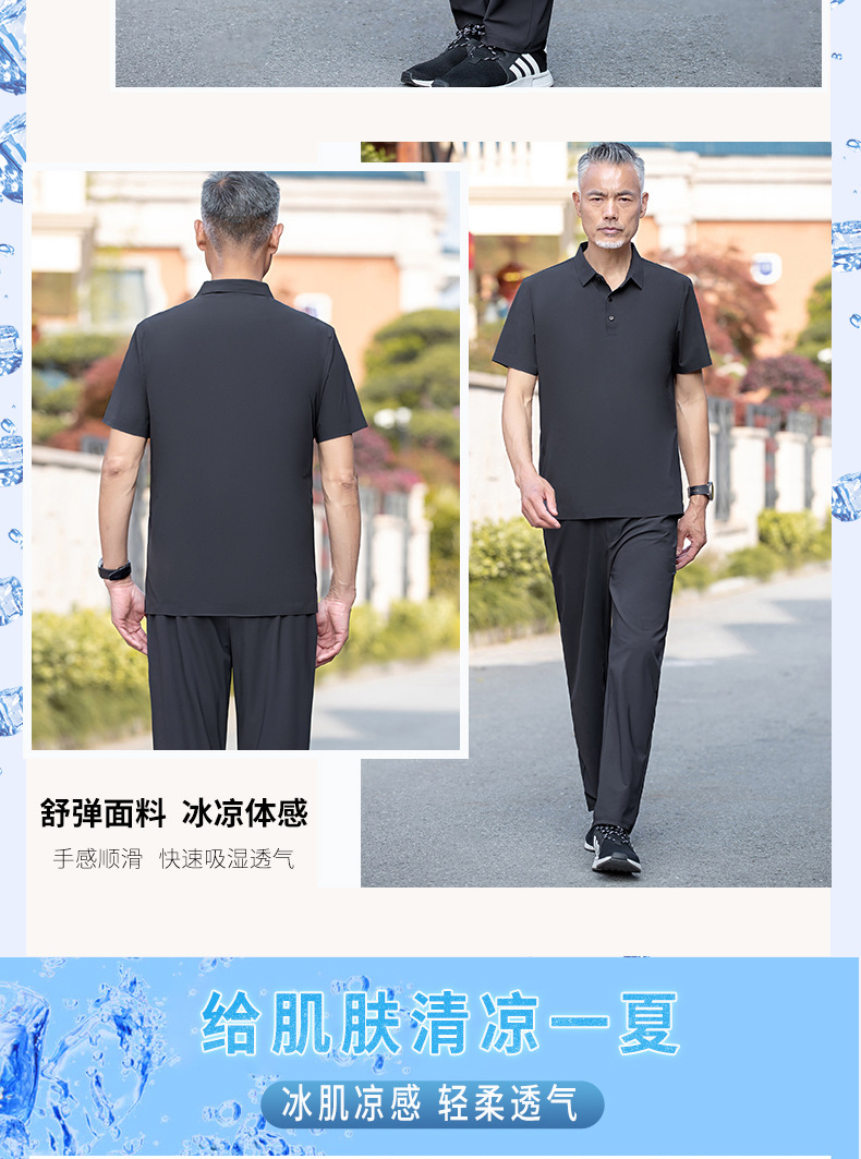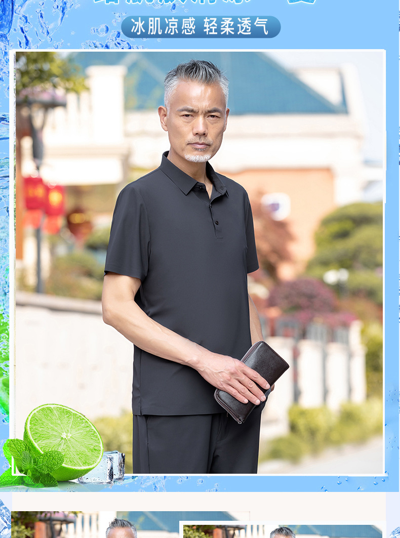 お父さん夏服セットアイス半袖tシャツ薄いカジュアル新型中高年男性夏poloシャツ上着