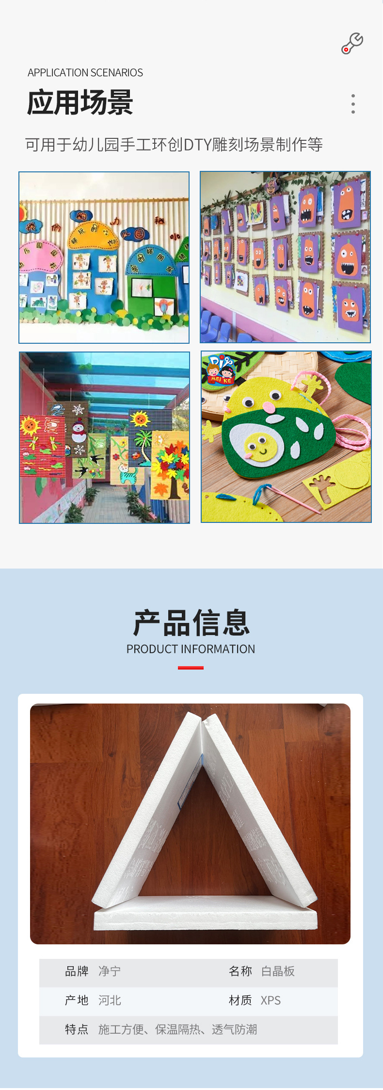 幼儿园手工环创高密度xps挤塑板diy画板美术雕刻模型板泡沫白晶板