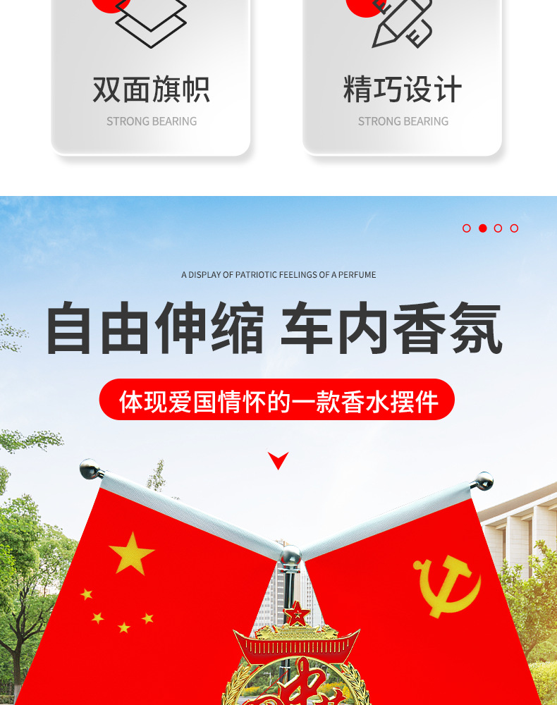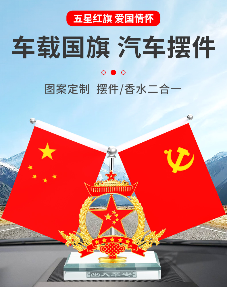 車の国旗を飾るアクセサリー三合一自動車香水座車内中控台装飾小紅旗党旗