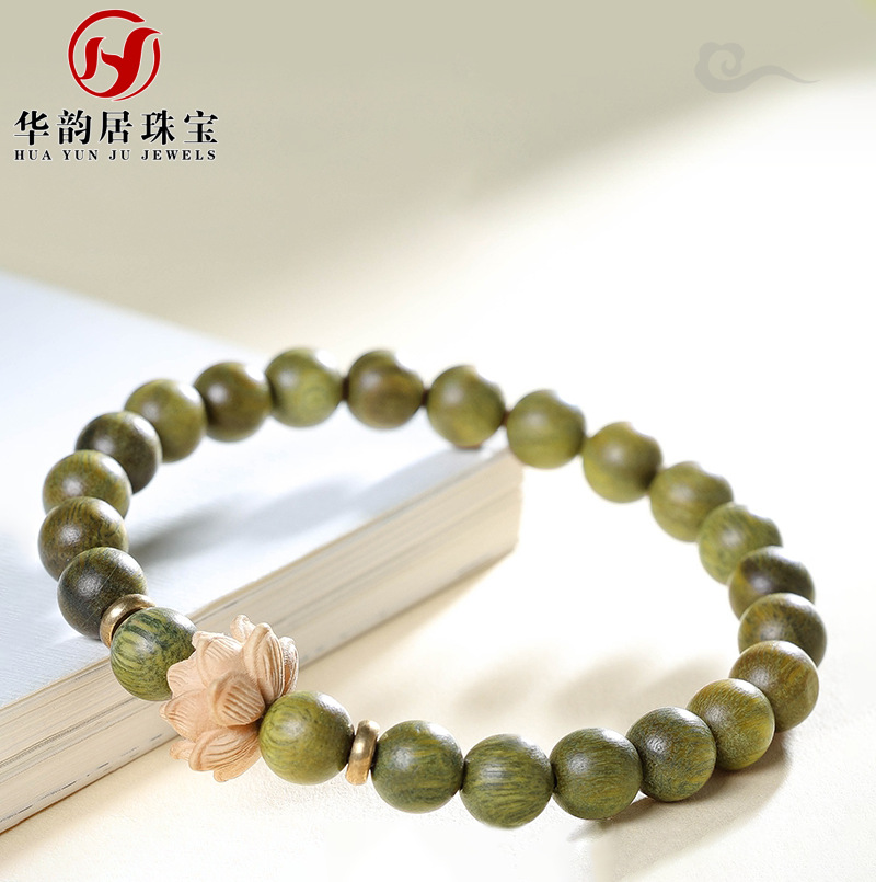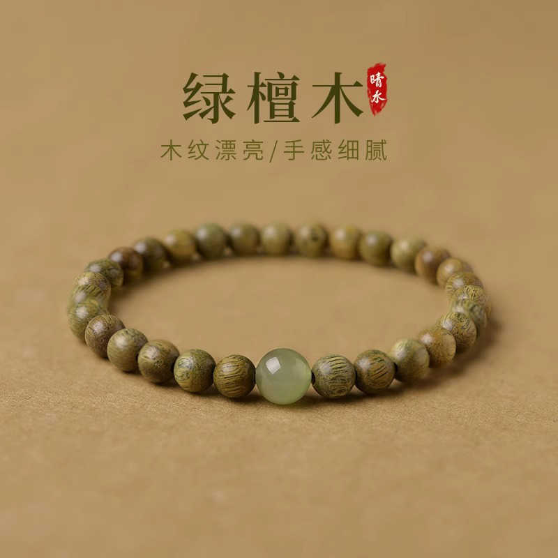 緑檀木仏珠手串女木質学生ブレスレットカップル檀香手串男民族風シングルリング