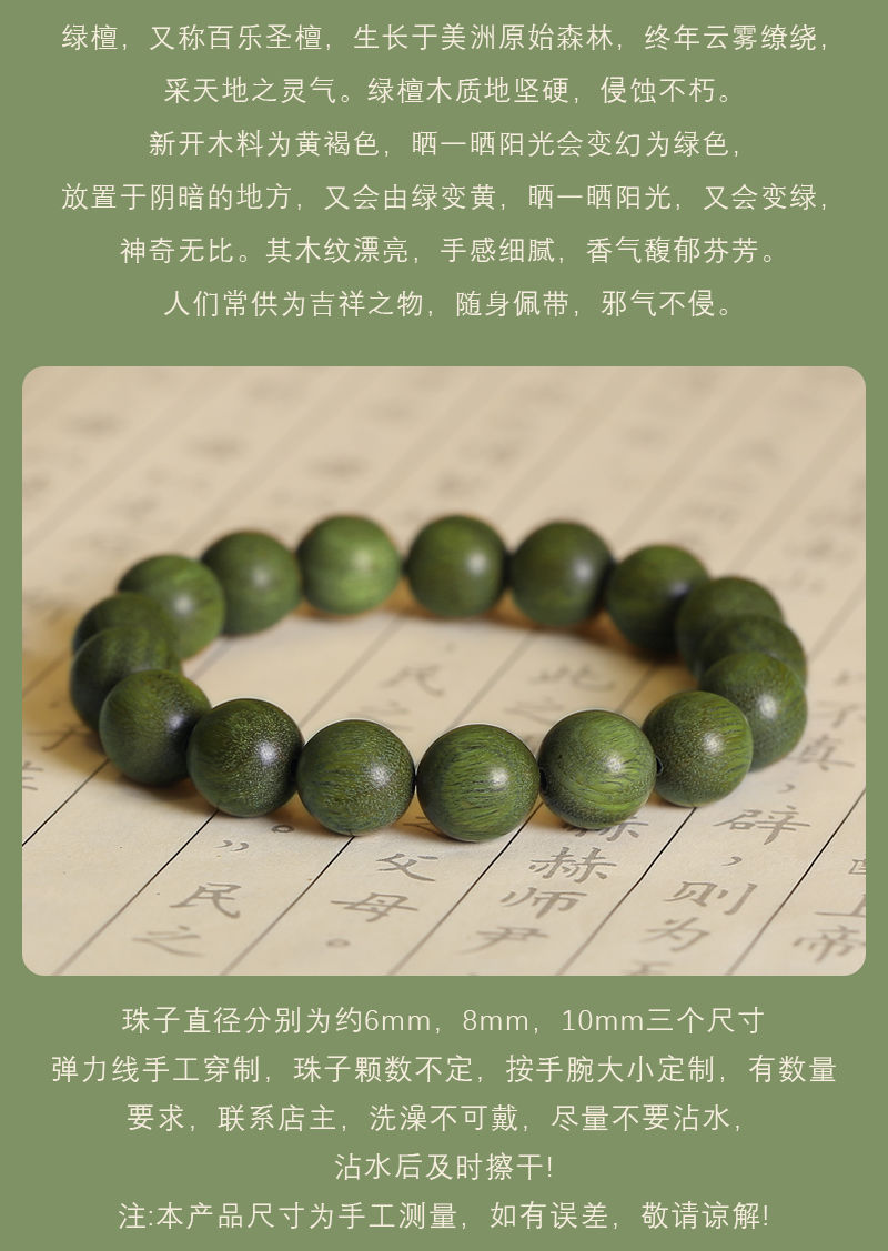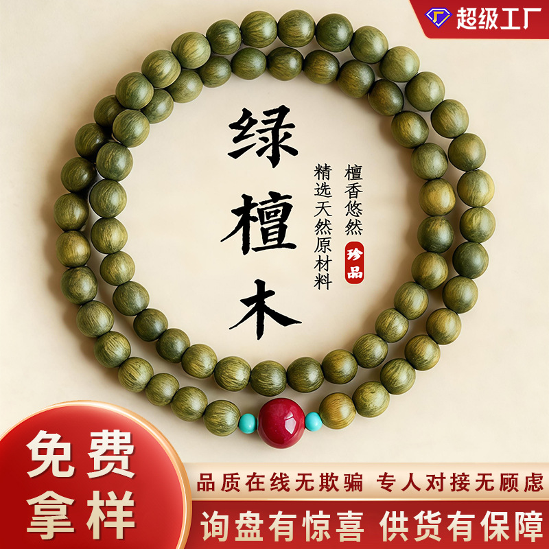 卸売りアルゼンチン緑檀手串女単輪正統檀香木多輪男仏珠カップル文遊び数珠ブレスレット