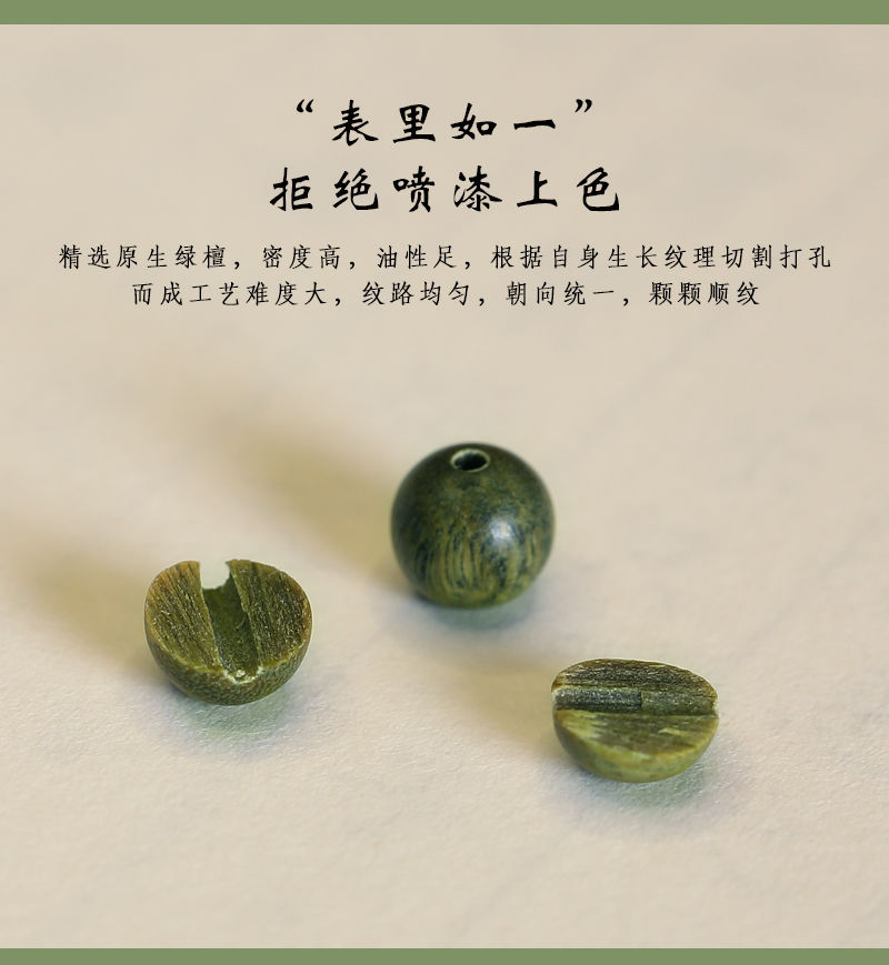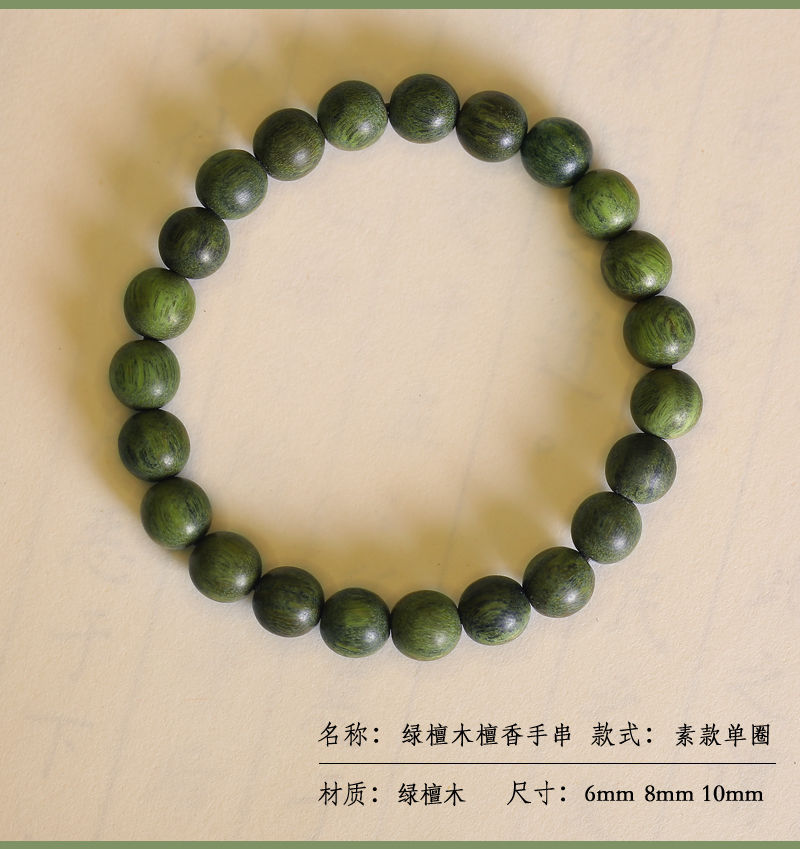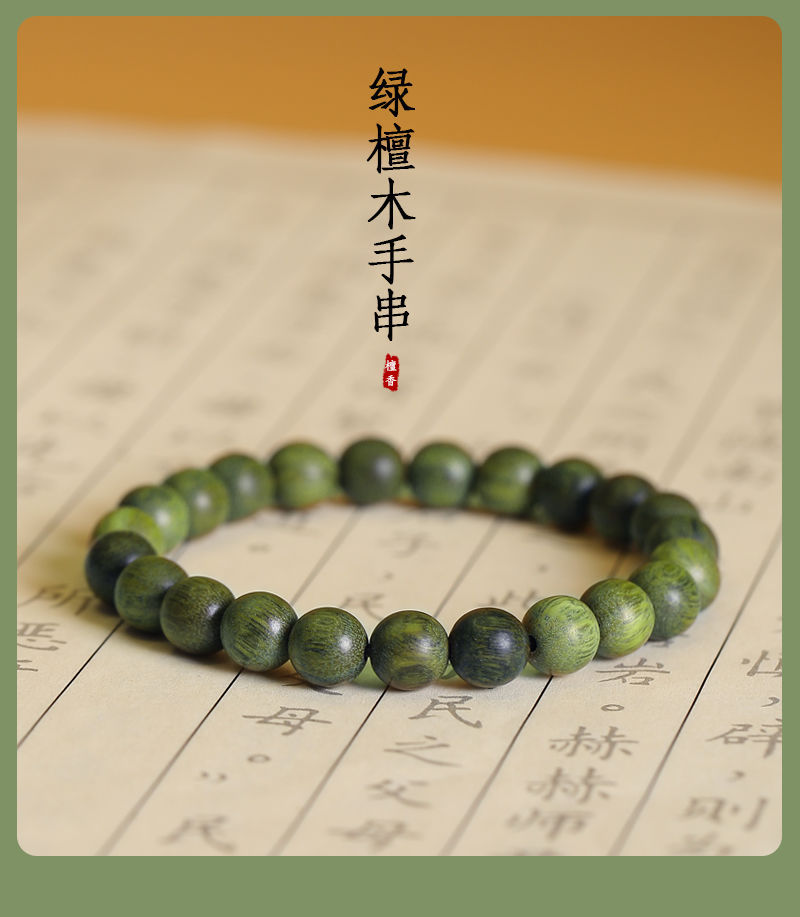 新中式天然绿檀手串男女款老料静心文玩佛珠檀木单多圈绿檀木手链