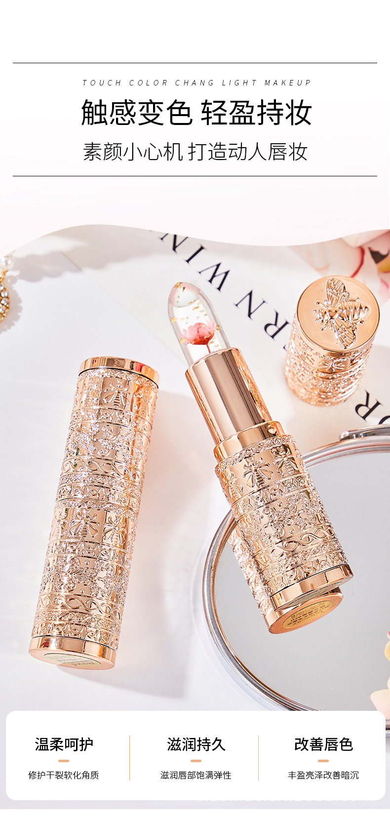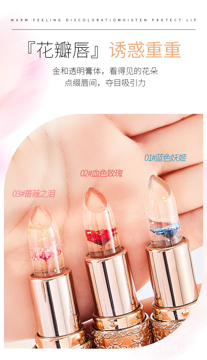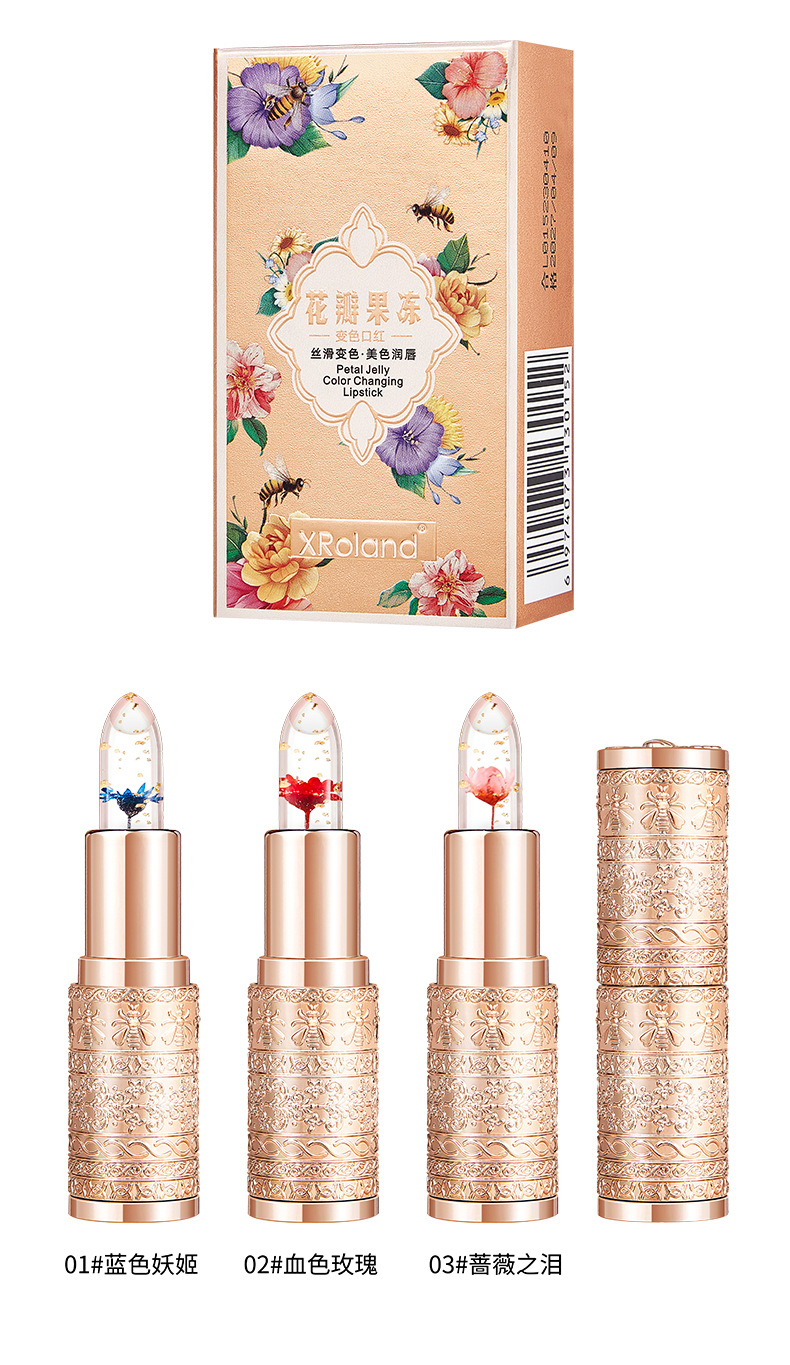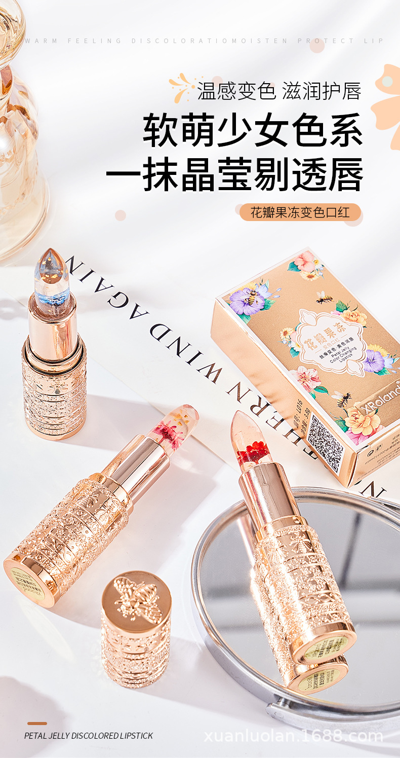 Xroland花びらゼリー変色口紅持続保湿補水は脱色しにくい防水温変リップクリーム直販