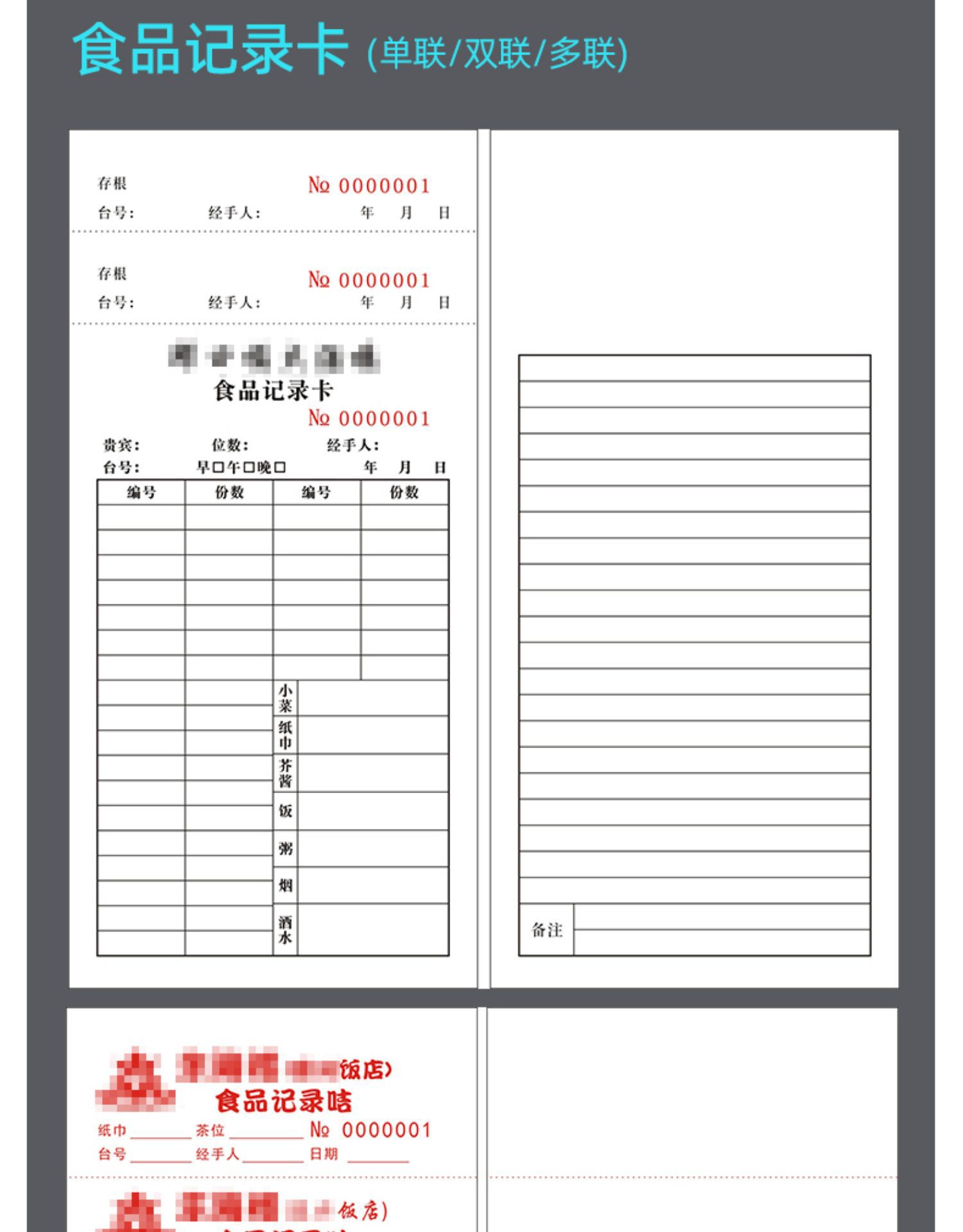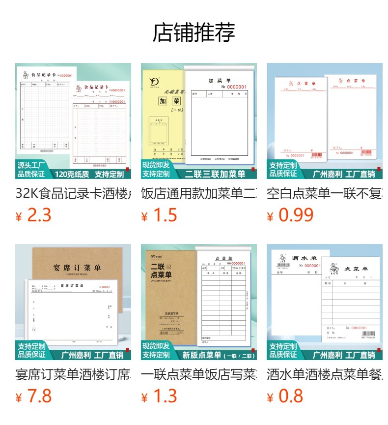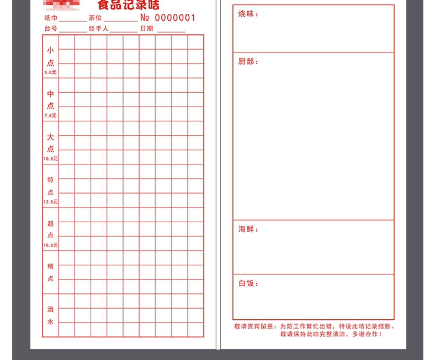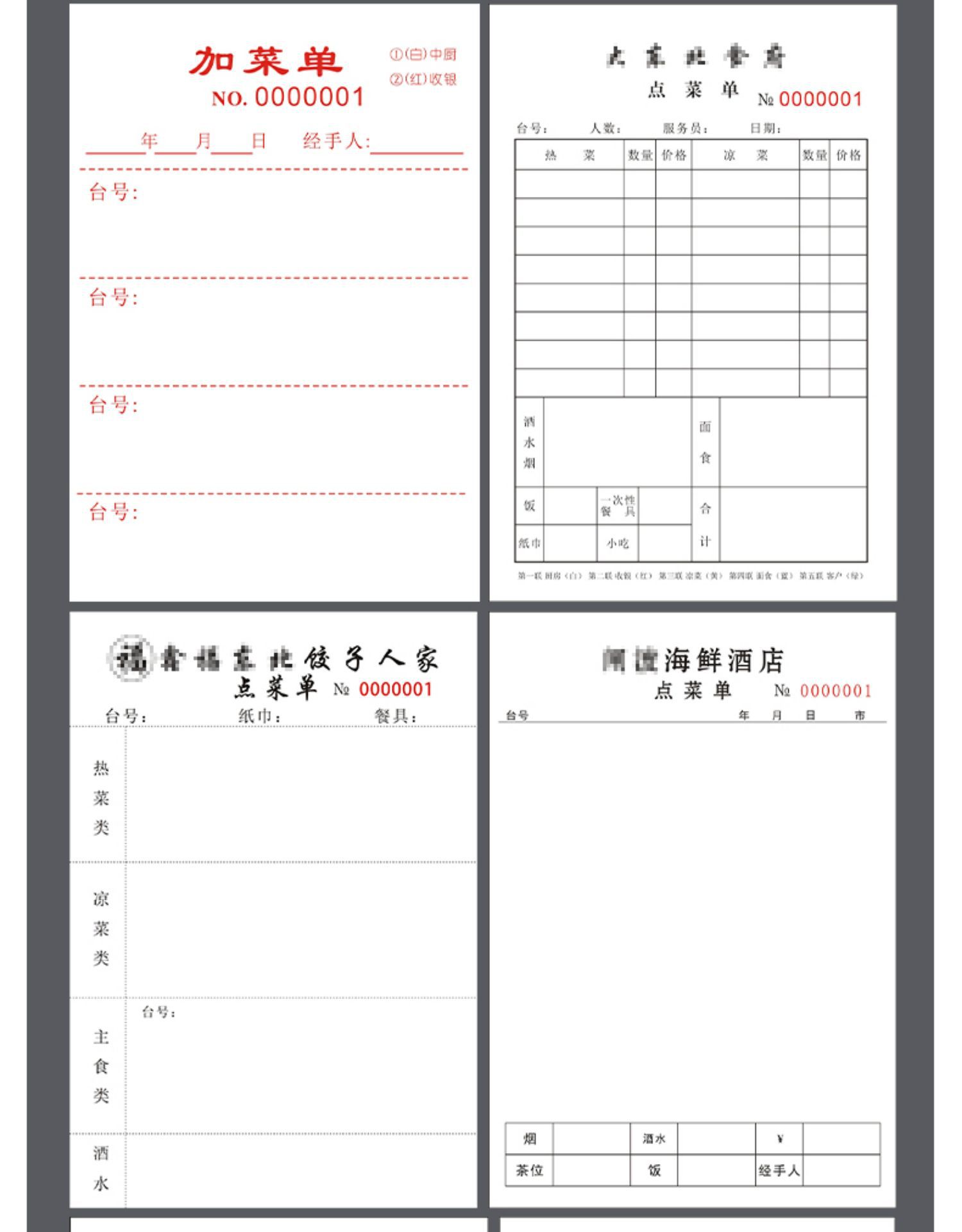 空白点メニュー二連三連複写紙レストランの料理本焼き屋台の会計はカスタマイズできます。
