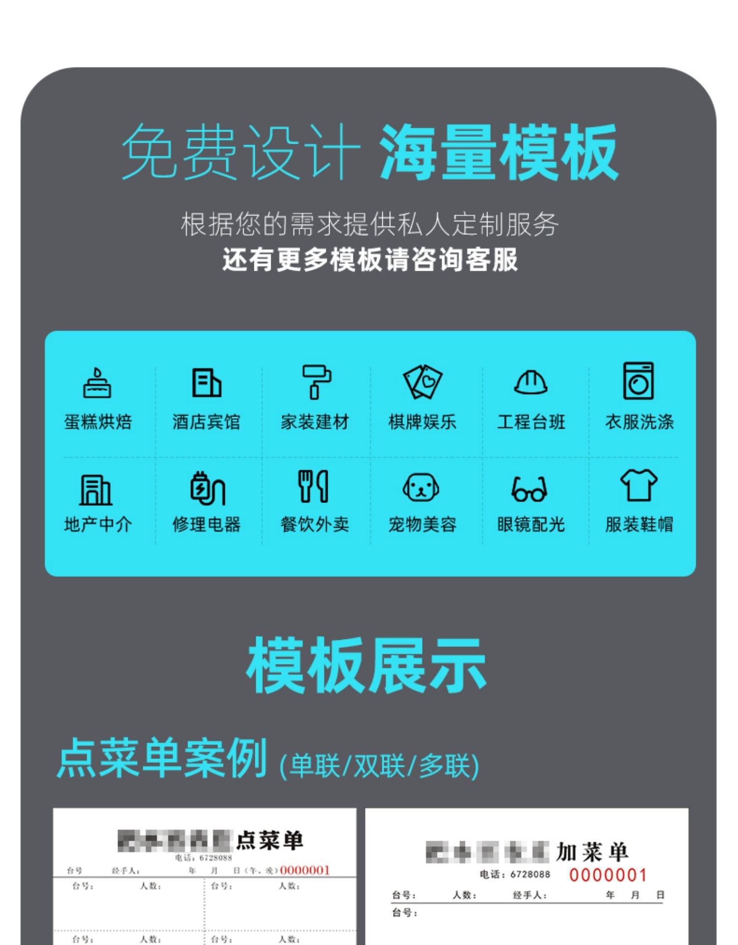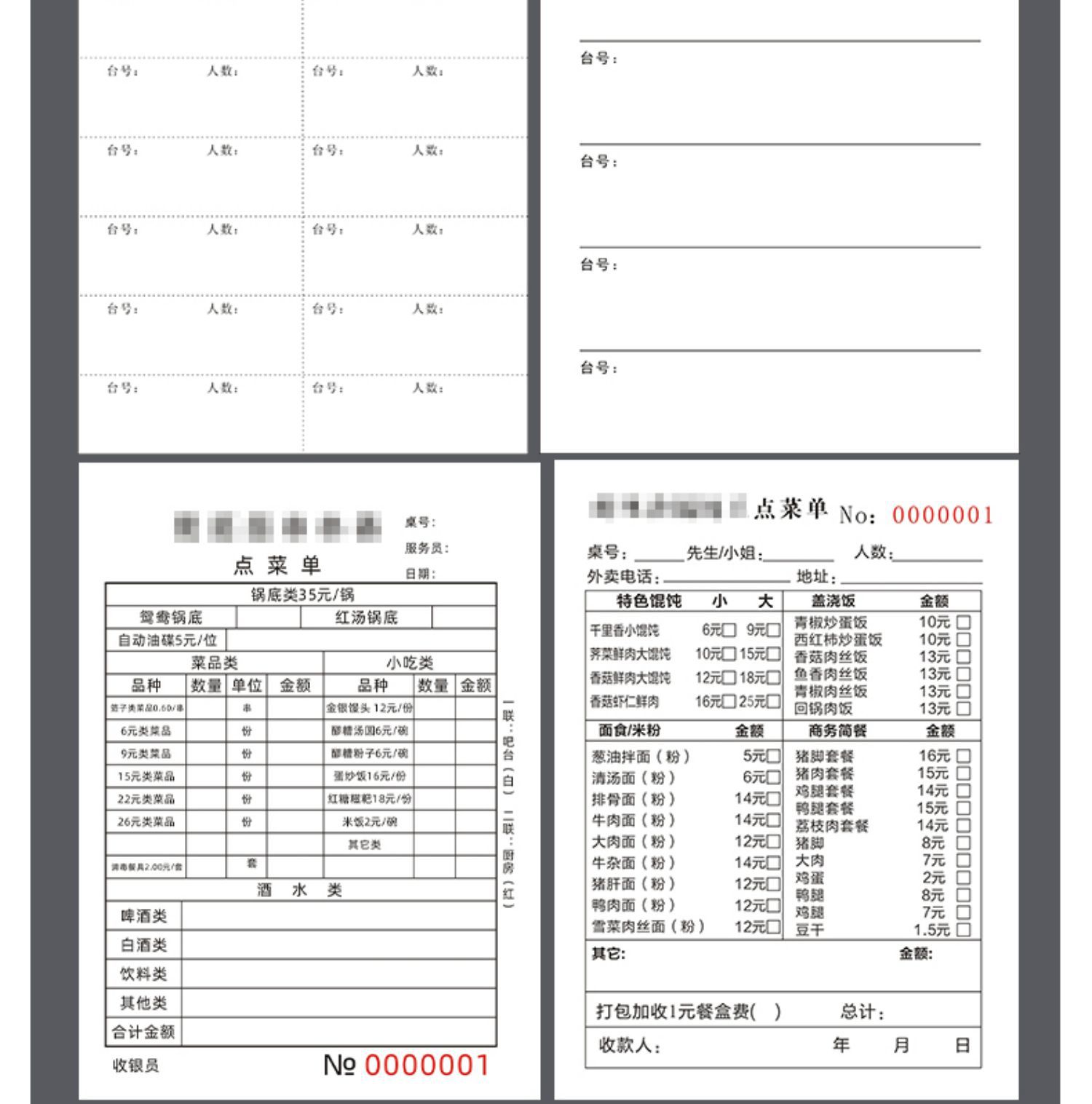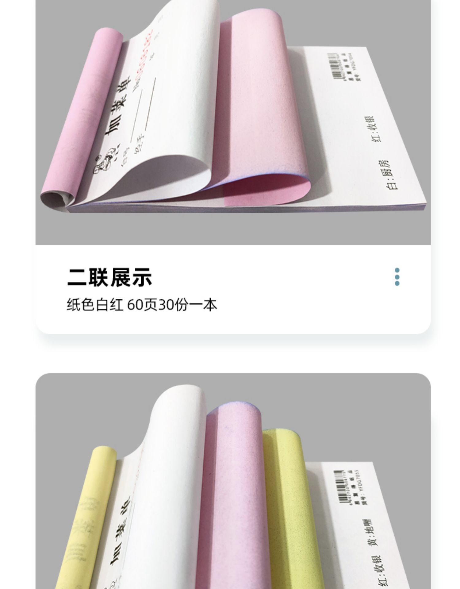 空白点メニュー二連三連複写紙レストランの料理本焼き屋台の会計はカスタマイズできます。