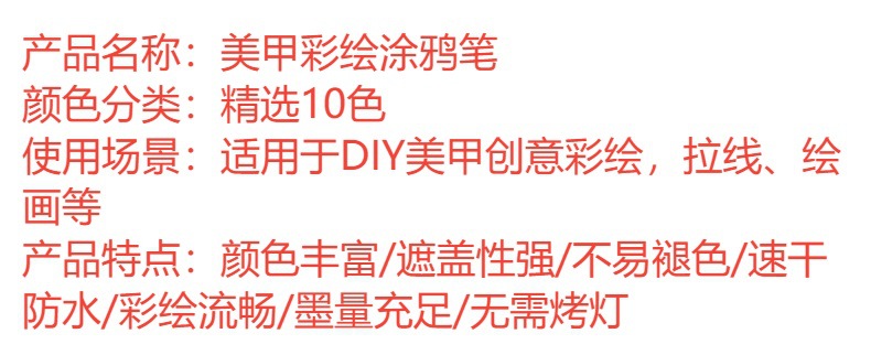 ネイルアート彩色ペンセットカラー手描き爪引き線ペン卸売り爪落書き彩色ペン点花線