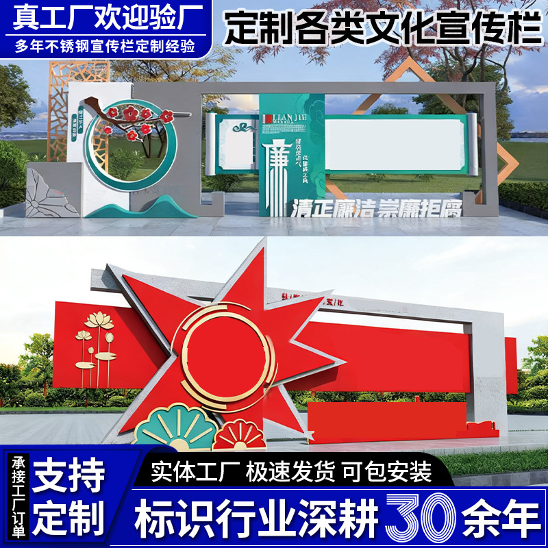 批发户外大型不锈钢宣传栏文化健身精神堡垒标识牌廉政文化宣传栏