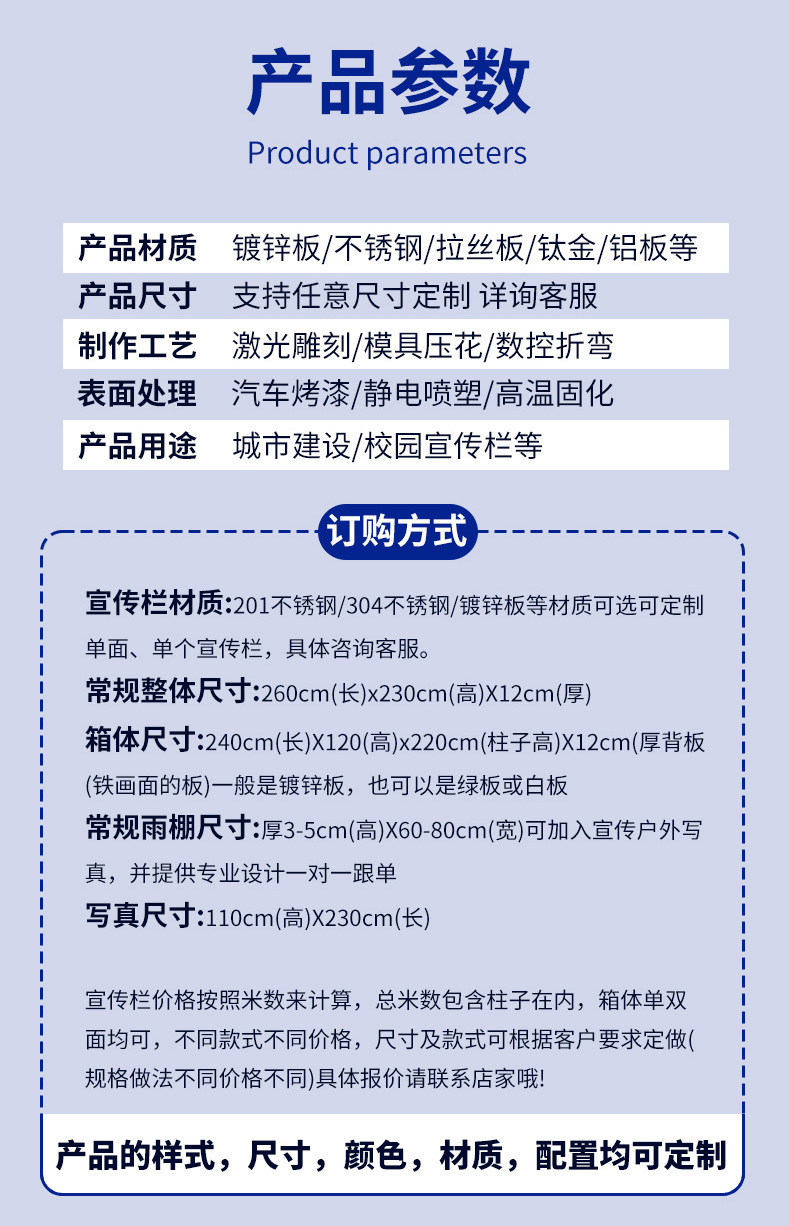 户外宣传栏不锈钢公告栏导向标识牌党建文化长廊公示栏村委宣传牌