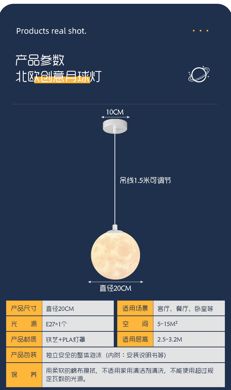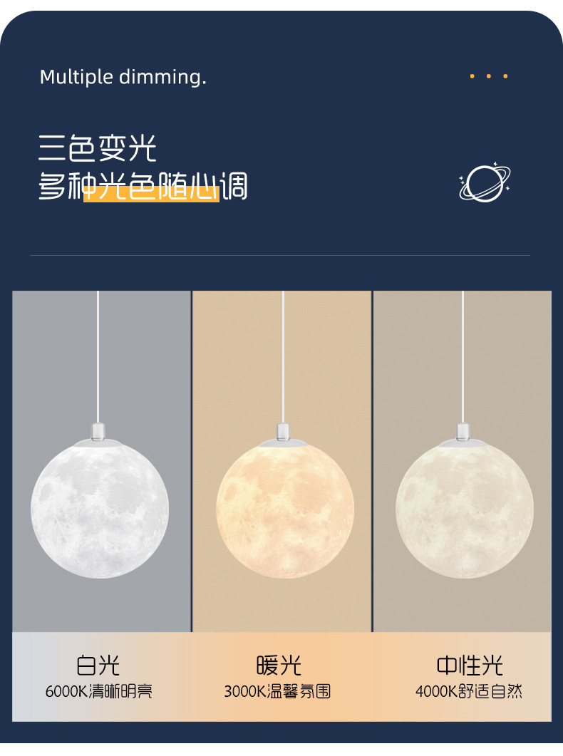 餐厅吊灯月球灯星球月亮灯过道餐桌吧台商用工装灯具卧室灯风批发