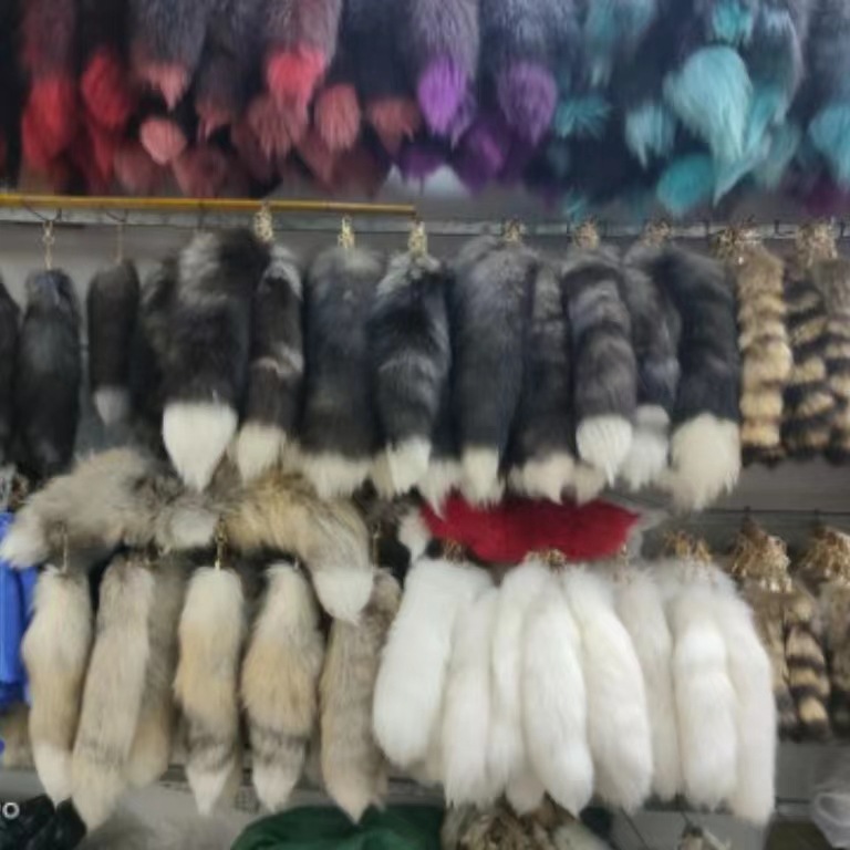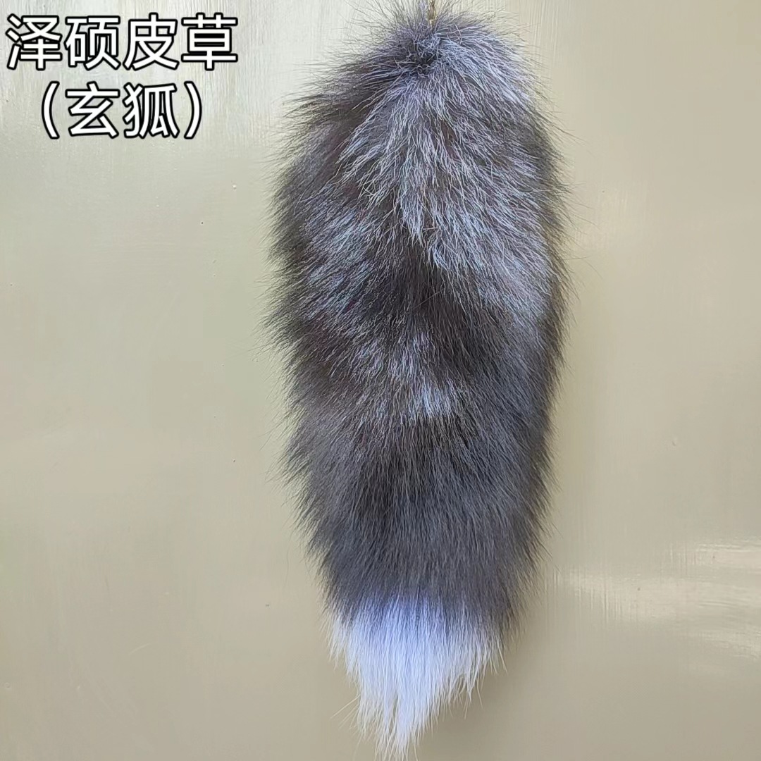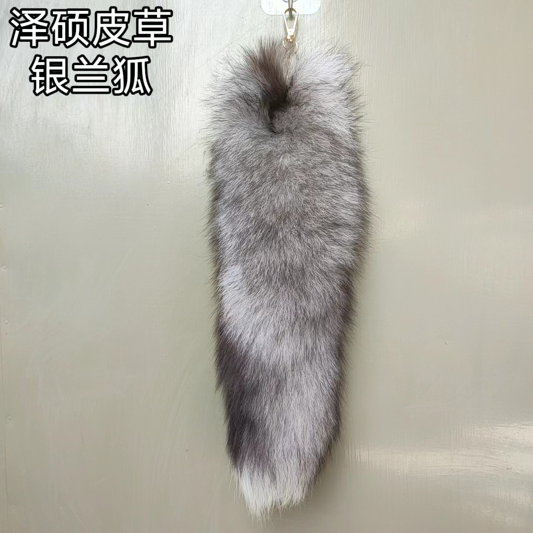 超巨大キツネのペンダント銀藍狐のしっぽの真毛の毛皮のアクセサリーの女性のカバンは車のキーホルダーを飾ります。