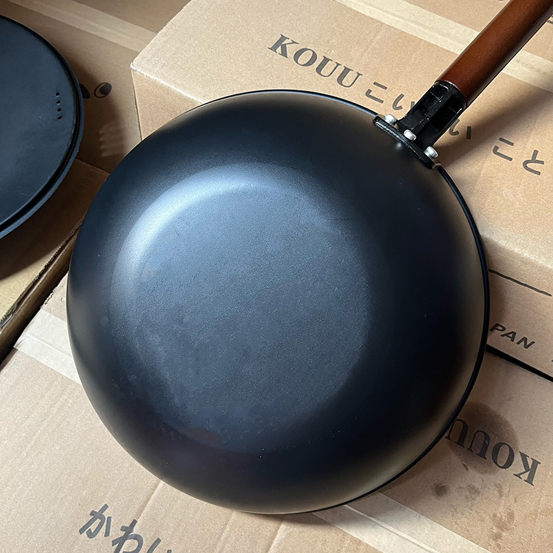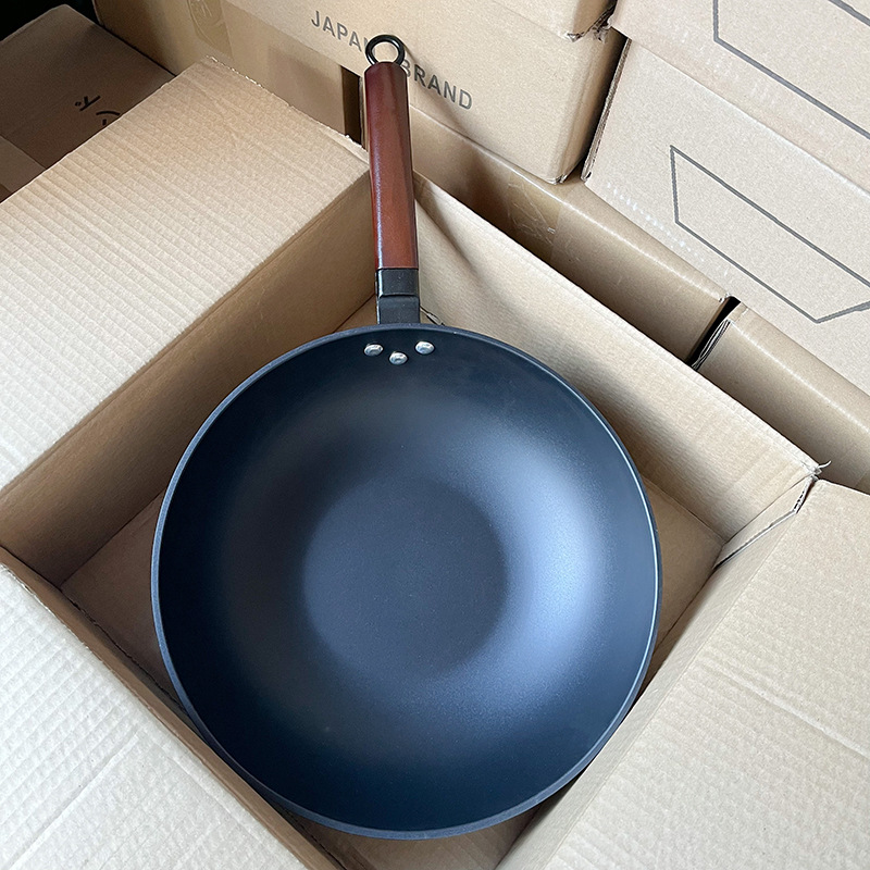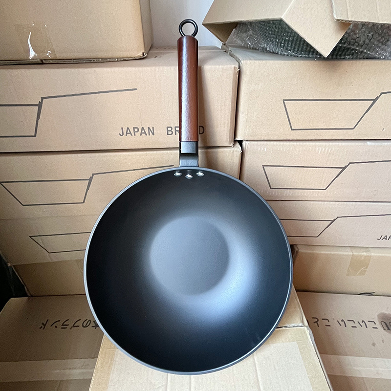 国境を越えた日本式鉄鍋家庭用炒め鍋の平底にコーティングがない鍋電磁炉ガス通用炭素鋼鍋具