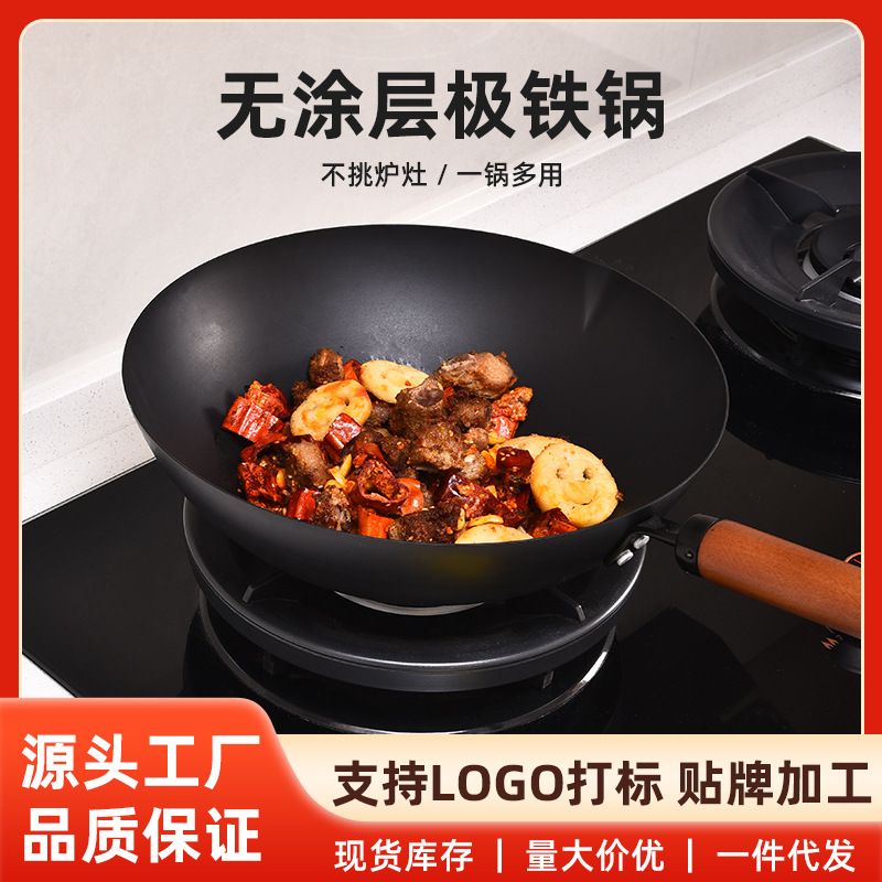 極ブランド同型の手作り純鉄製中華鍋、コーティングなしノンスティック、家庭用中華鍋32cm極鉄鍋