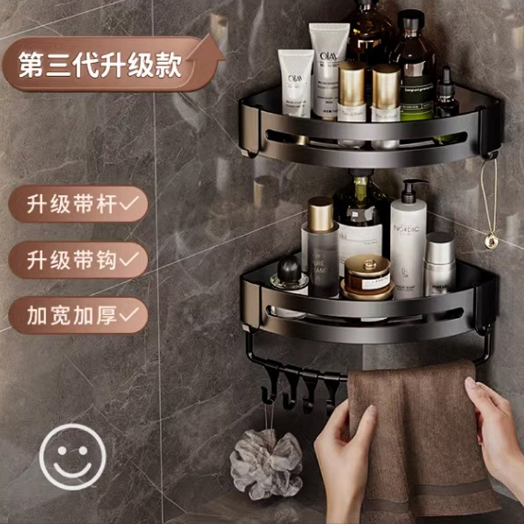 穴なし銃灰浴室棚二重三角壁掛けトイレ宇宙アルミトイレコーナー風呂収納