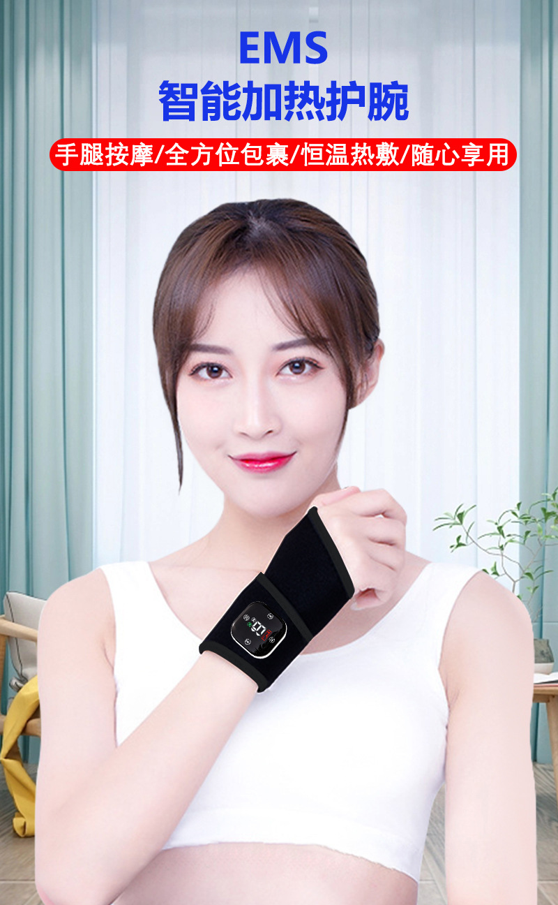 EMS手腕腱鞘按摩护腕扭伤手指带热敷按摩器可调节电热手部按摩仪