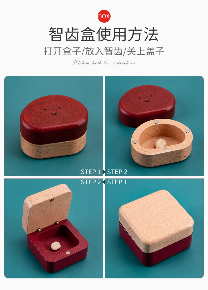 木製赤ちゃん記念おもちゃ正方形愛ハート形乳歯ボックス乳幼児記念収納ボックス