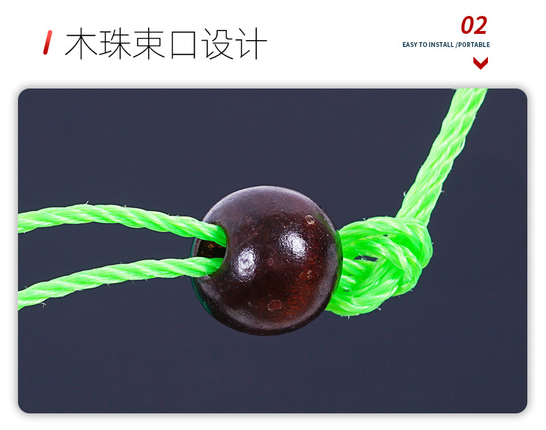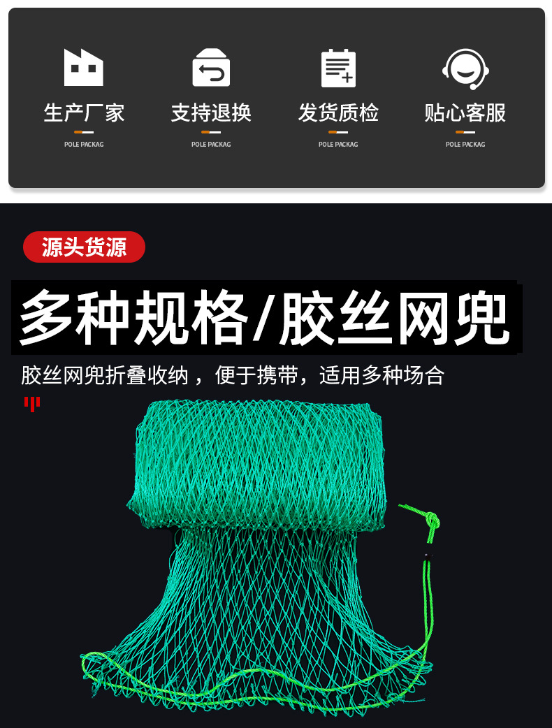 Xiping漁具メーカーは、様々な仕様の18本撚り糸の魚保護ネット、野生釣り用ブラックピットゴム糸簡易ネットを製造しています。