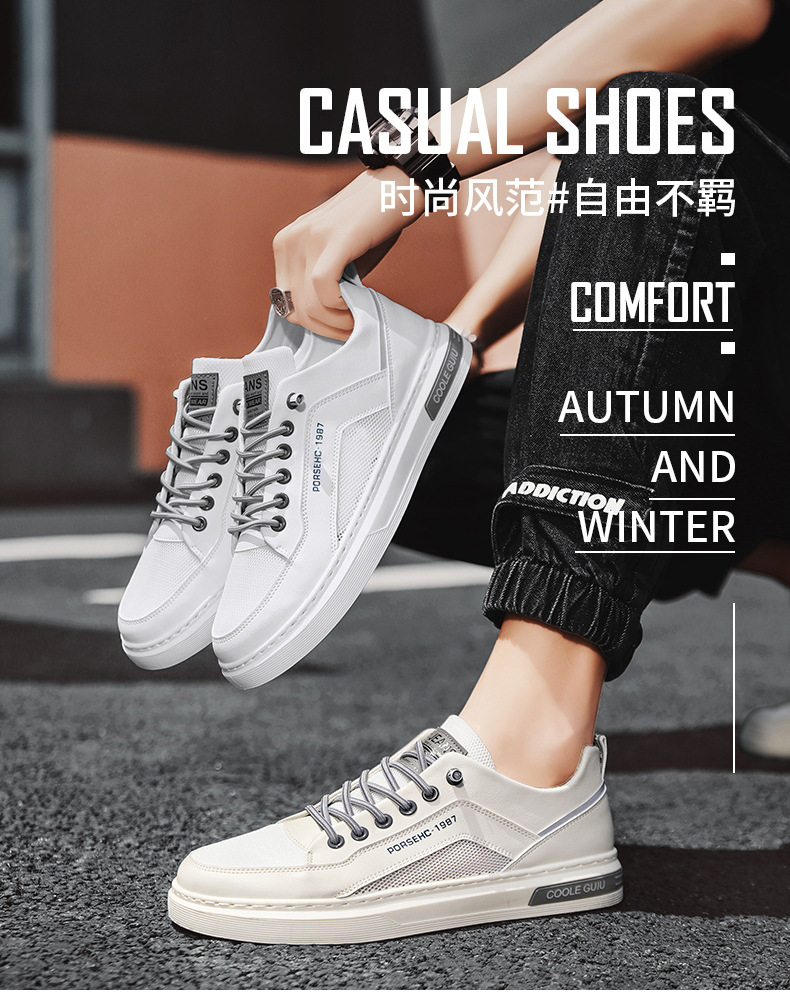 新商品の男性靴春夏のネットの通気性の透かし彫りの板の靴の軽やかなレジャーのファッションの靴の百合の流行の学生の白い靴
