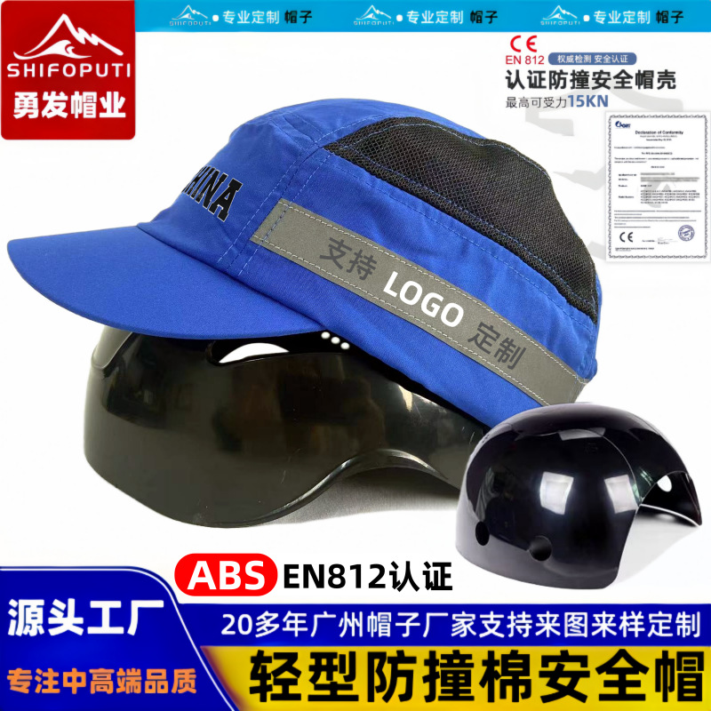 軽量防衝撃キャップ、ABS製安全保護野球帽、綿製安全帽インナー、EN812規格