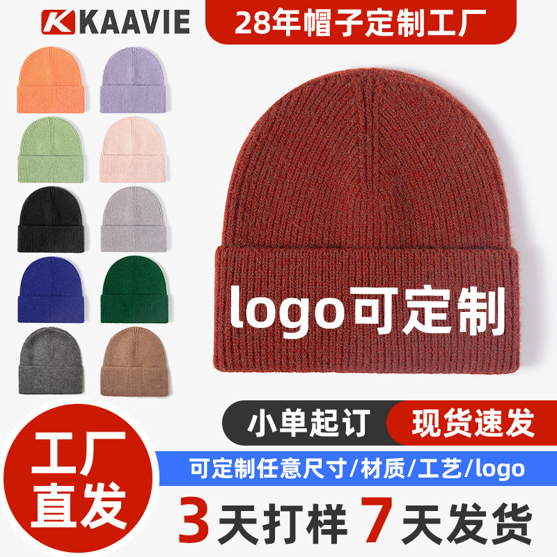 秋冬対外貿易耐摩耗アクリル光板毛糸帽シンプルな純色保温冷帽刺繍ニット帽カスタマイズ