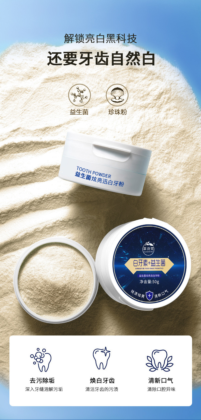 抖音同款益生菌牙粉去牙结石去黄去烟渍白牙素清洁口腔护理洗牙粉