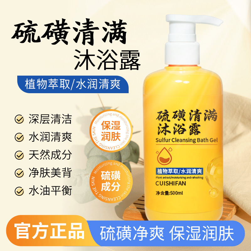 Douyin の人気の Cuisifan 硫黄浄化抗ニキビシャワージェル中国語と英語版のマイルドなクレンジングドロップシッピング