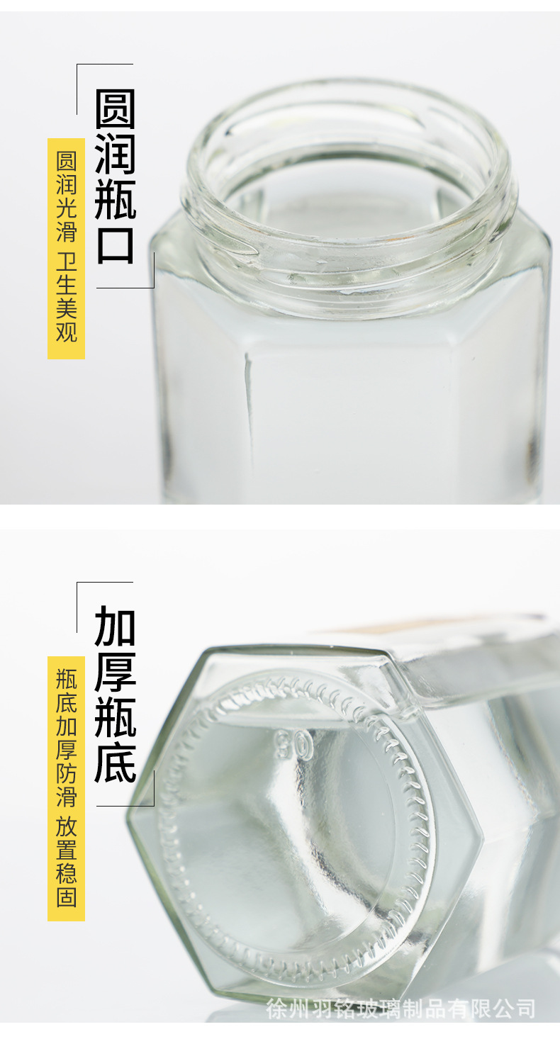 徐州羽铭玻璃制品有限公司是蜂蜜瓶、酱菜瓶、罐头瓶、果酱瓶、储物罐、密封罐等产品专业生产加工的公司,拥有完整、科学的质量管理体系。徐州羽铭玻璃制品有限公司的诚信、实力和产品质量获得业界的认可。公司一直以服务专业、顾客满意为经营宗旨,以求仁为大、求利为小、真正为人民服务的经营理念,开拓进取,务实创新,在做好经营的基础上,还以打造地方特色品牌为己任。在多年的经营中,坚持培养高素质员工,不断优化生产技术,用品质和服务让客户回头的经营原则;实行品质为先、快速加工,依靠专业能力获取公平回报的经营策略。坚持快速销售、合理定价,要求销售人员与客户心对心联络、面对面交流。同时,公司坚持规范经营,不追求高利润率,坚守价值底线、拒绝利益诱惑,坚持以专业能力从市场获取公平回报,是获得成功的基石。欢迎各界朋友莅临参观、指导和业务洽谈。
