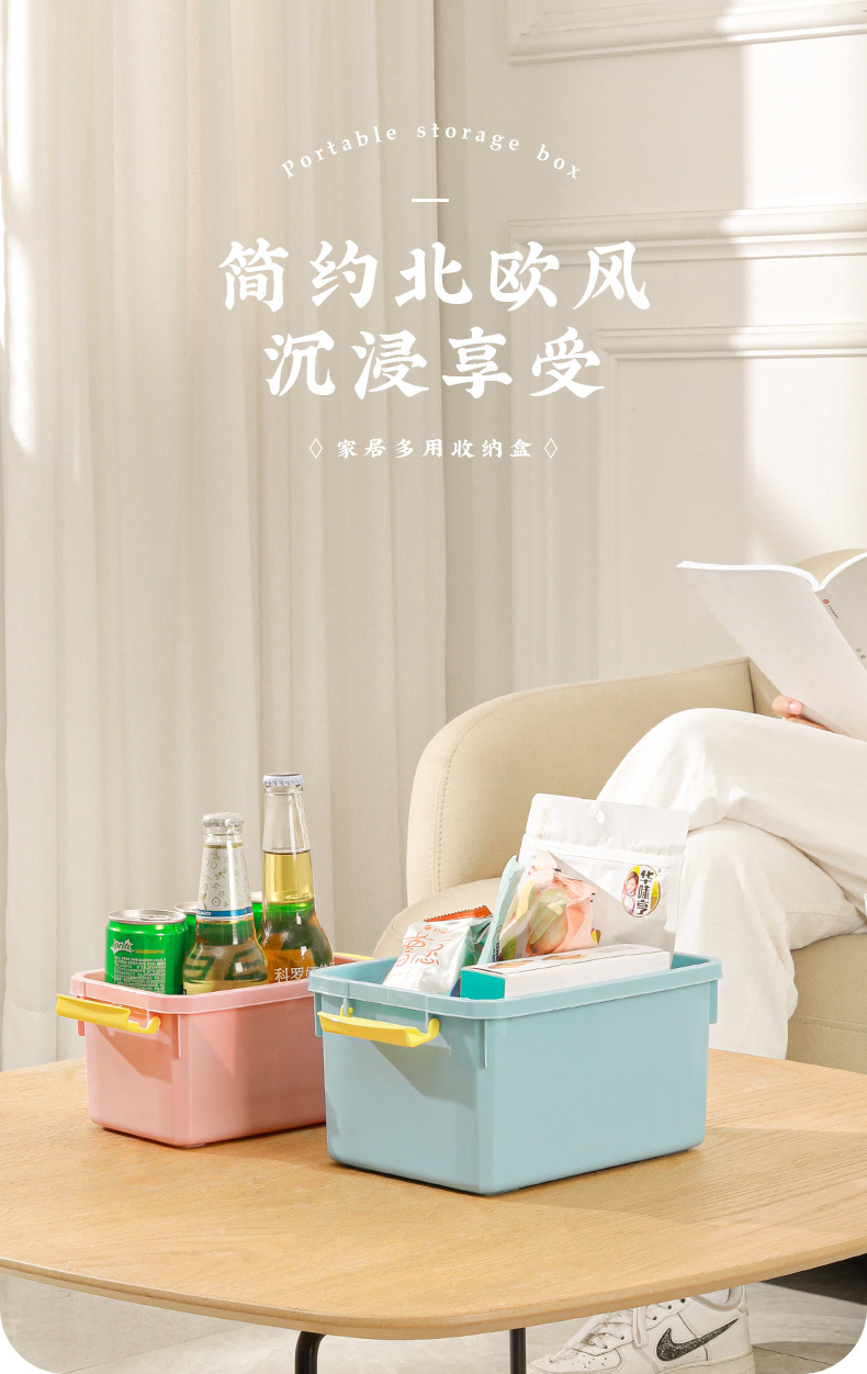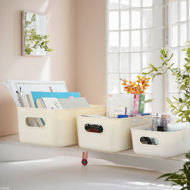 雑物デスクトップ収納ボックススナック収納ボックス化粧品口紅収納浴室キッチンプラスチック収納かご手提げ