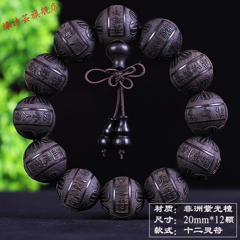 梵鳴保真紫光檀仏珠手串黒檀木彫刻シングルサークル民族風20mm文遊び檀木ブレスレット