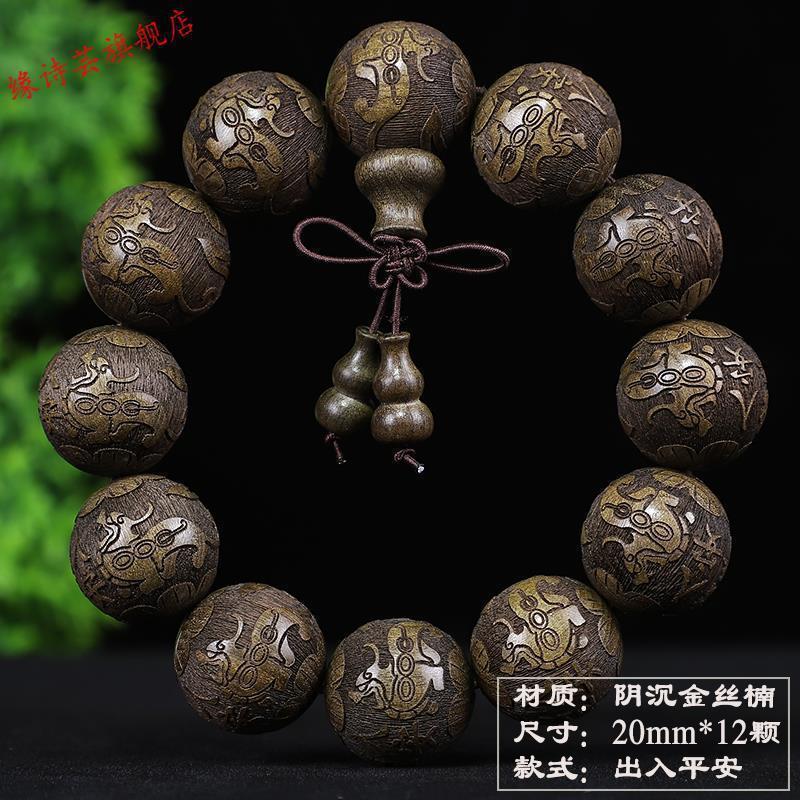 小葉紫檀孟洛川十二真言浮彫紅木手串ブレスレット血檀男士文弄仏珠数珠