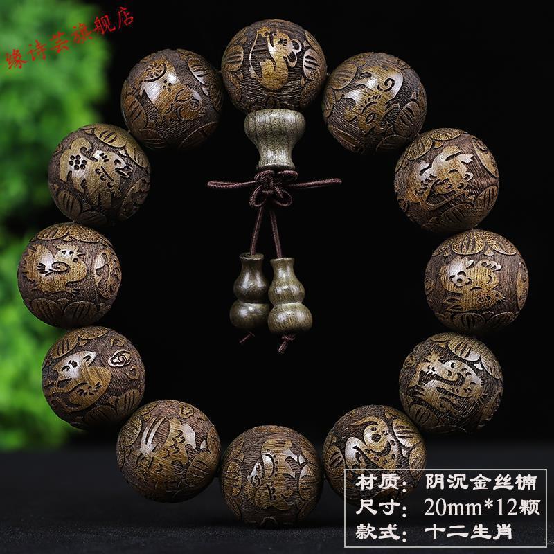仏珠彫刻手串十二生肖木珠彫刻12生肖手串男女鎖木質文遊び数珠