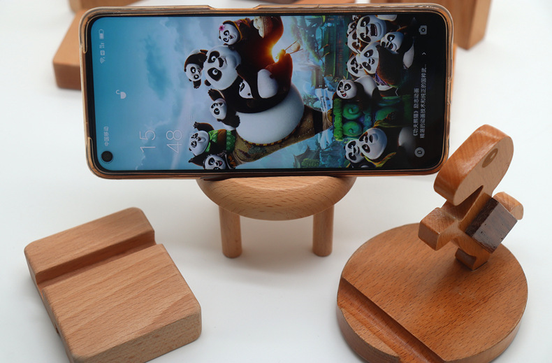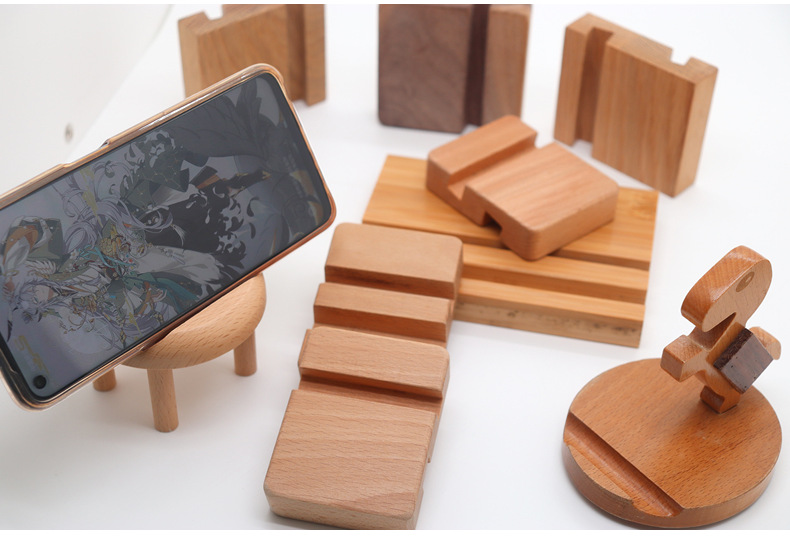 ケヤキの携帯電話のスタンドの木の携帯電話のスタンドの怠け者の携帯電話のスタンドのアイデアのデスクトップの置物のロゴ
