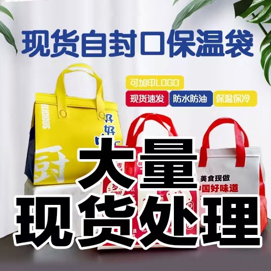 保温バッグ用粘着テープ、セルフシール式テイクアウトバッグ、不織布アルミ蒸着外装、漏れ防止、携帯用ハンドル付き