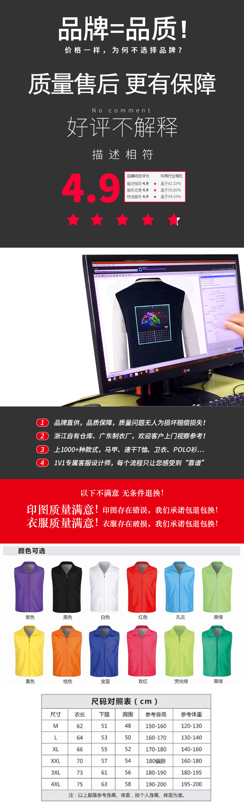 志愿者马甲定制印字logo党员义工公益广告宣传马夹背心超市工作服