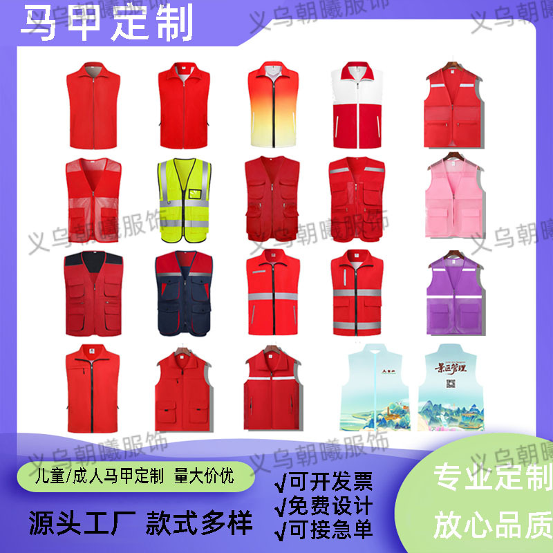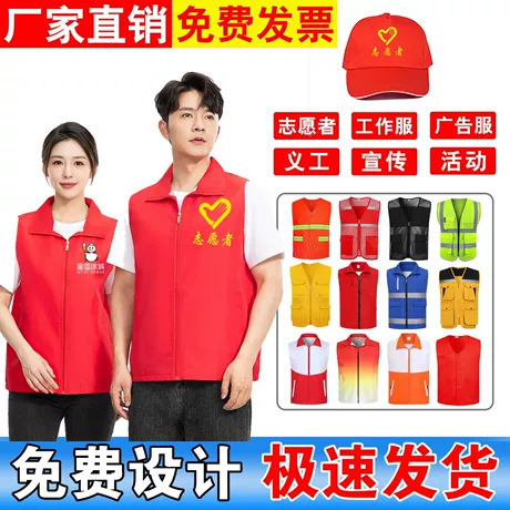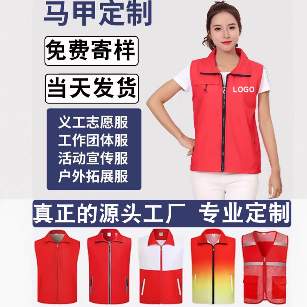 志愿者工作服红马甲定制印字广告宣传背心义工户外马夹印LOGO批发