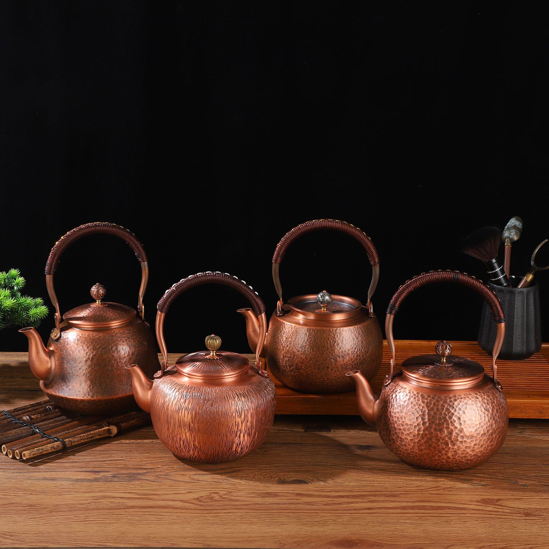 純紫銅ティーポット手作りハンマー点銅ポット中国式家庭用屋外囲炉煮茶湯沸かし器セット卸売り