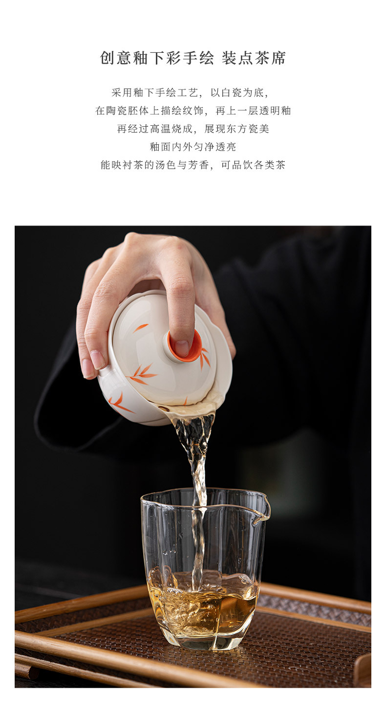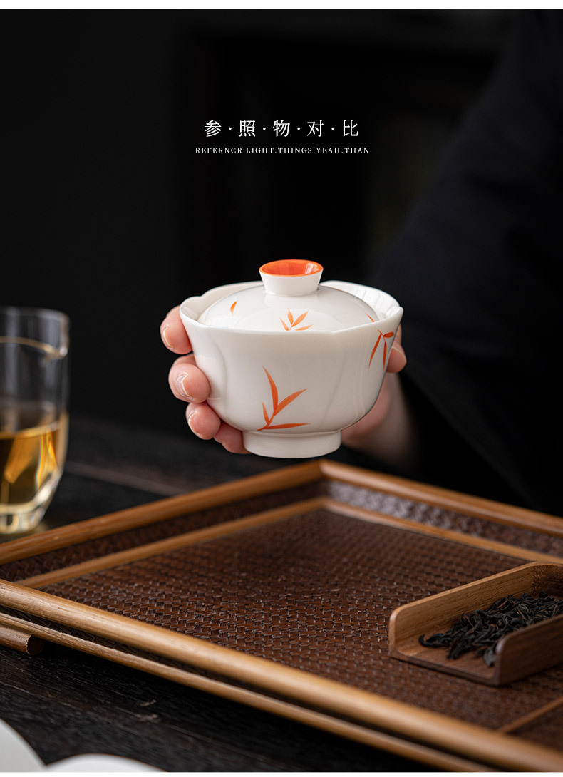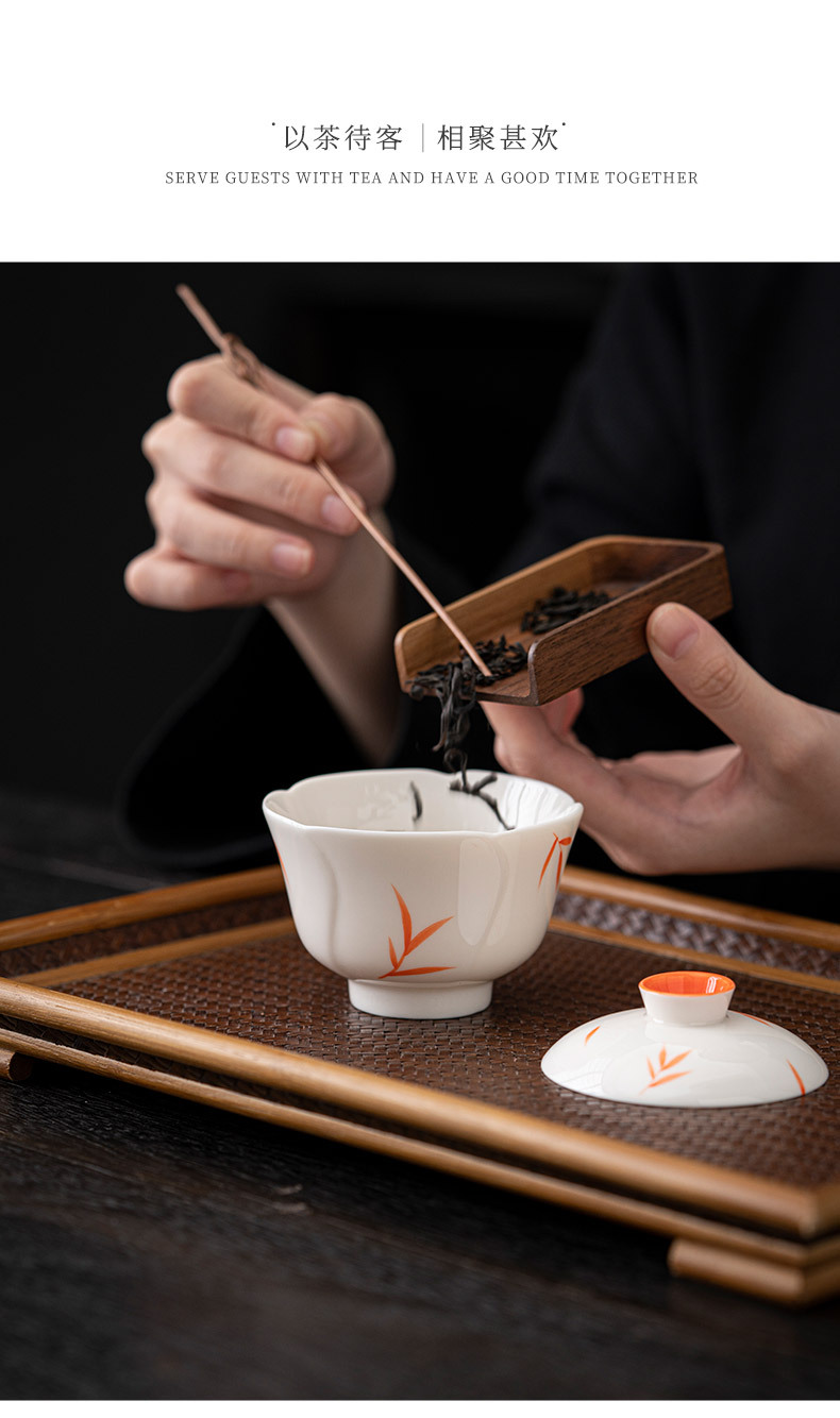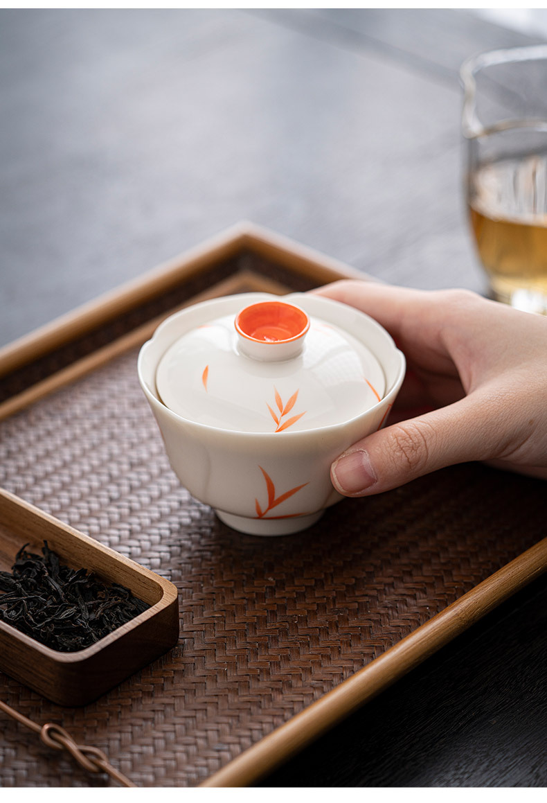 手描きの紅葉の白い磁器の蓋の工夫の茶器の家庭用の客は蓋を持ってお茶を入れます。
