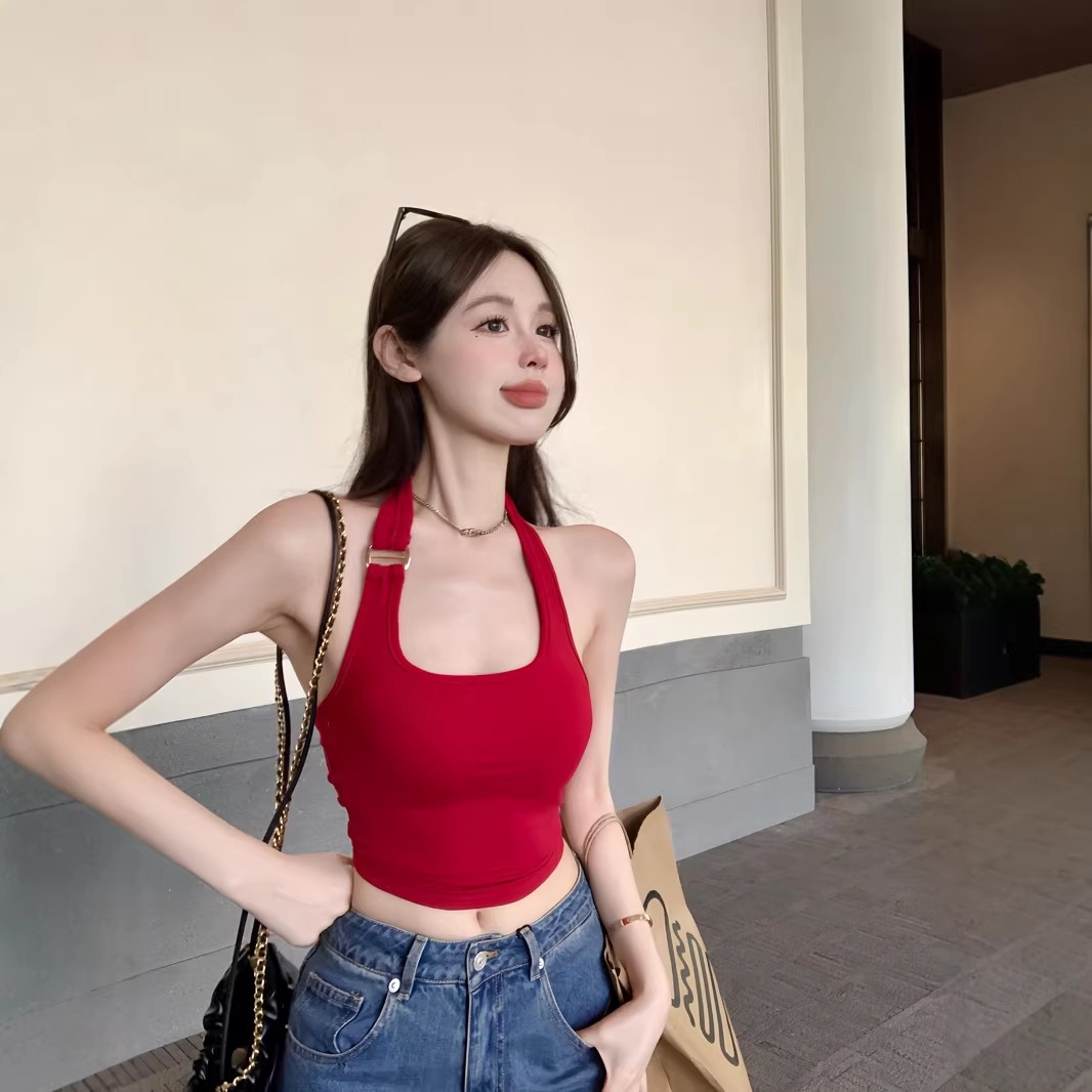 927 # 夏の新しいスタイルのピュアダイヤモンドチェーンホルターネックベストアウターウェアニッチセクシーなオールインワン胸パッド付きでスリムに見えます