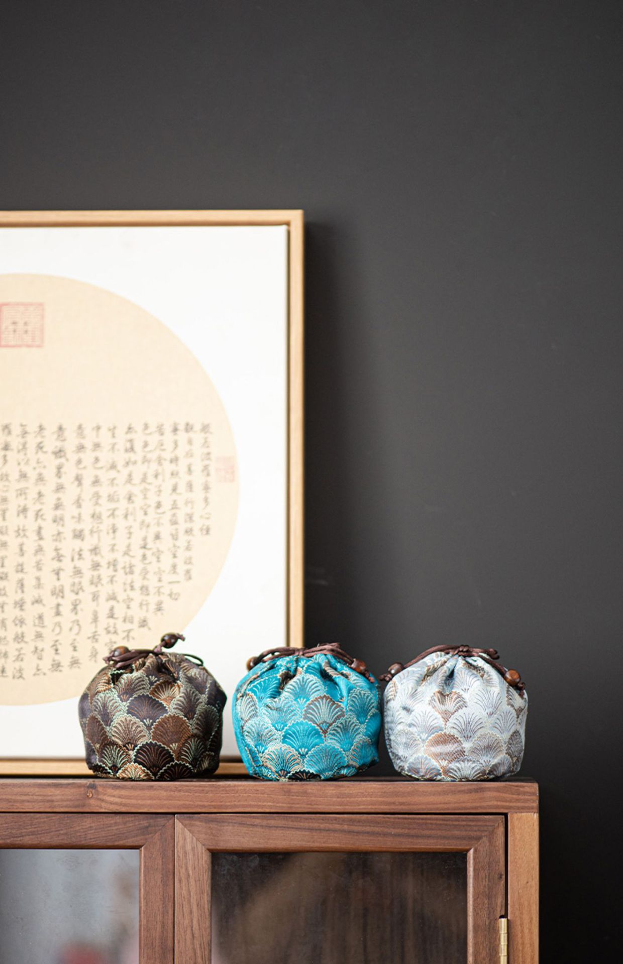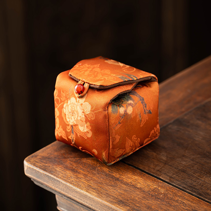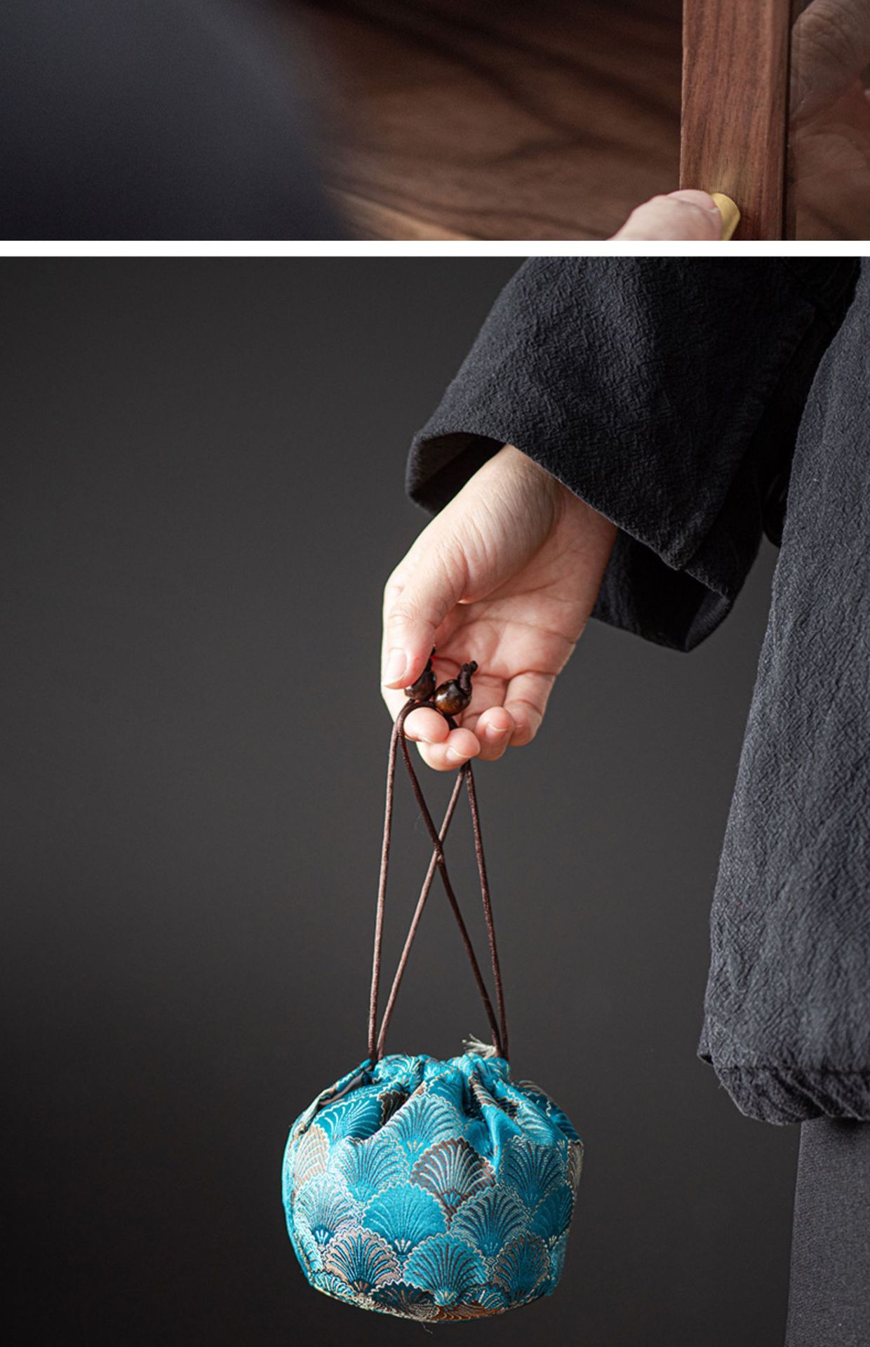 中国風茶道主人杯布芸携帯バッグ四方織錦引き紐刺繍布袋文遊びキャンディー収納袋