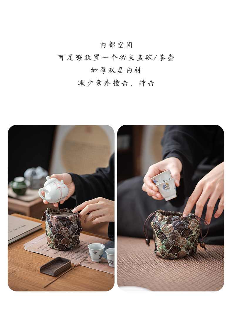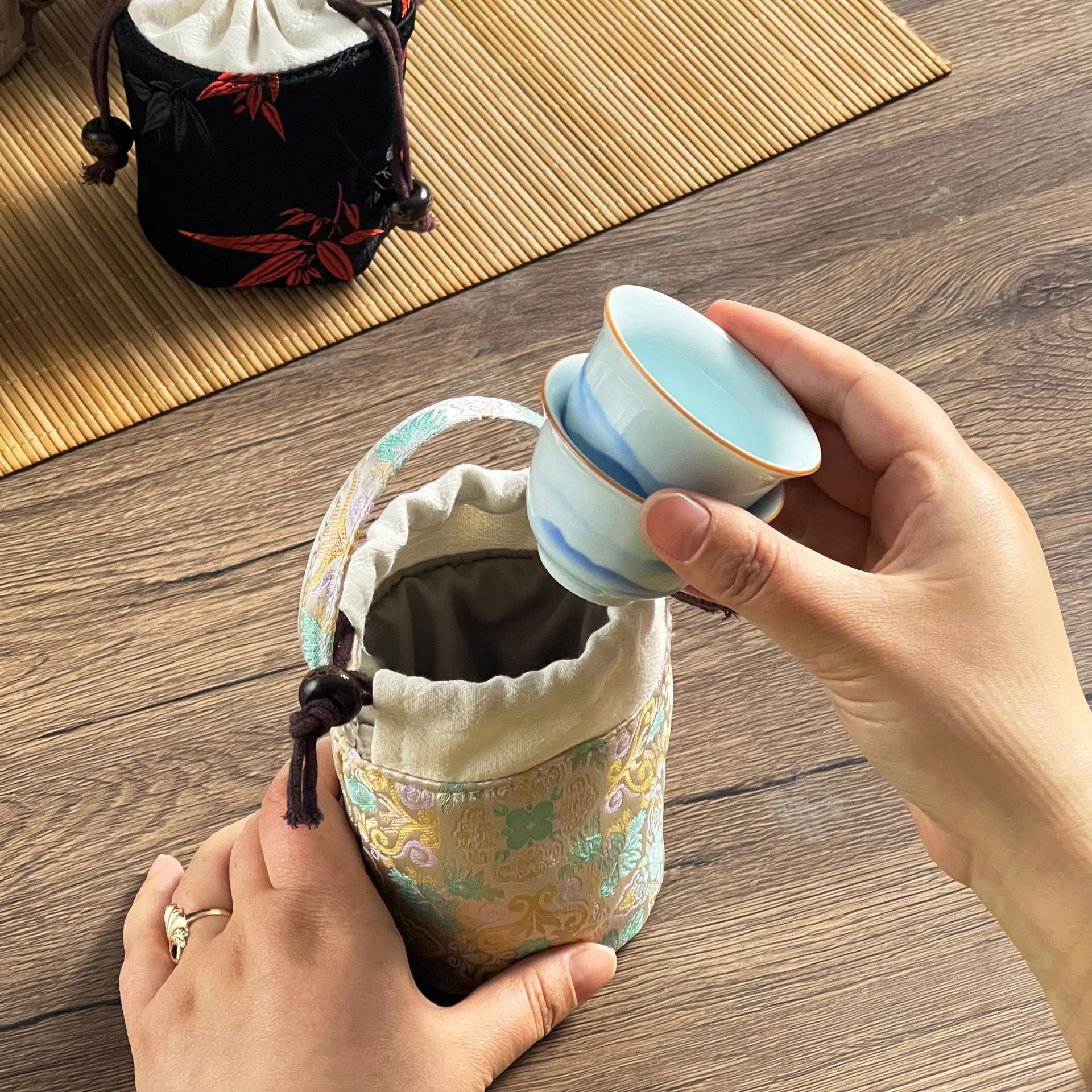 国潮風ティーカップ主人カップ収納バッグ家庭用アウトドアポータブルカップティーポット単カップ収納バッグ